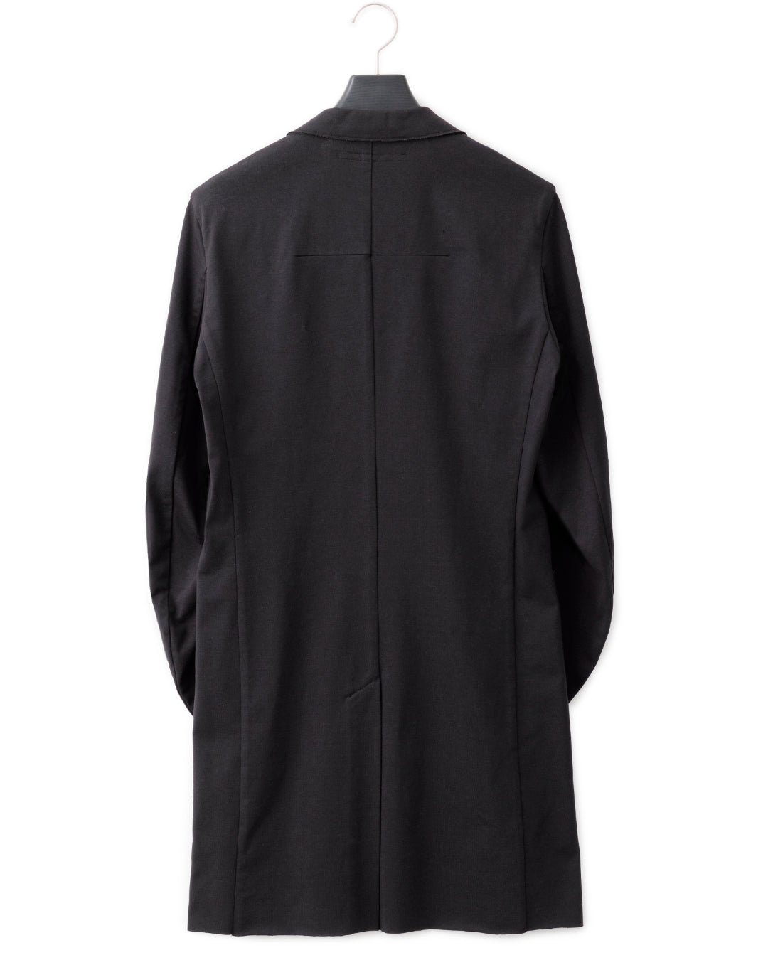 斜めのボタンホールやアウトポケットをディティールに、カーディガンのような軽快な着用感とスリムに引き締まったシルエットを見せる一枚仕立てのロングジャケット。