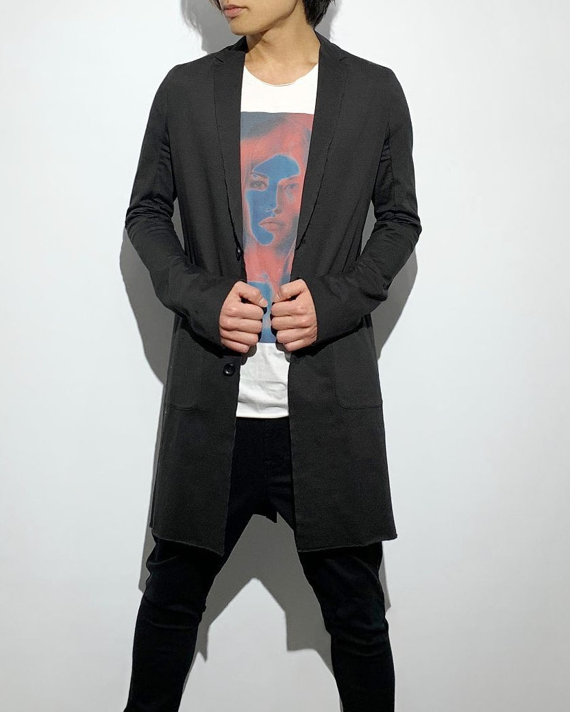 プレーティング天竺を使用したカットソーロングジャケット。