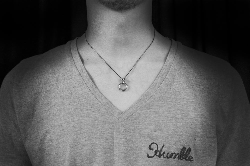リングにチェーンを通す表現を、GIGORならではのデザインで解釈したペンダント。