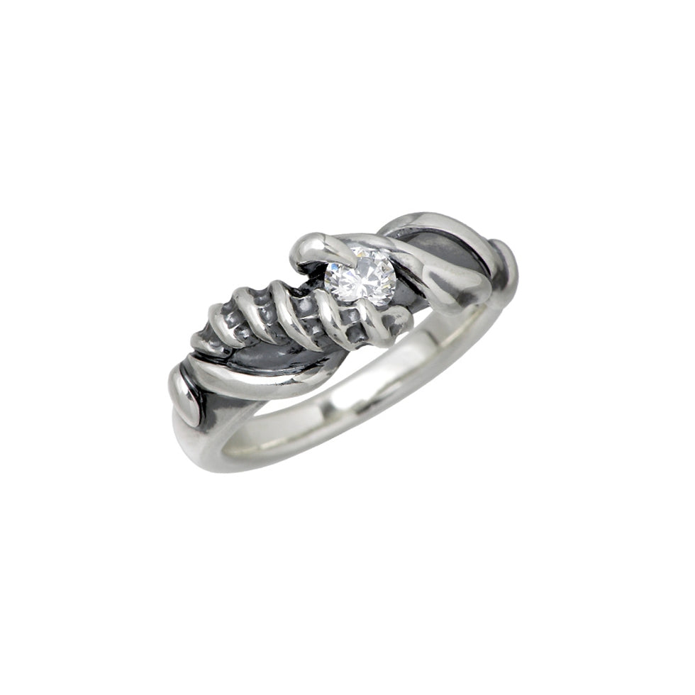 ブランド設立10年目の節目とし、今まで培ってきた「曲線美」と 真逆の「具象」を組み合わせることにより生まれる新世界を表現したリング。画像は「クリアCZ」を使用。