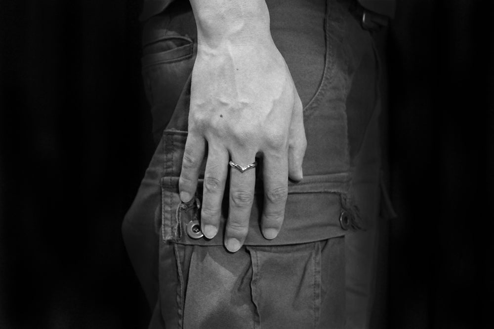 重ね着けにも適した、柔らかな曲線を描くV字デザインリング。