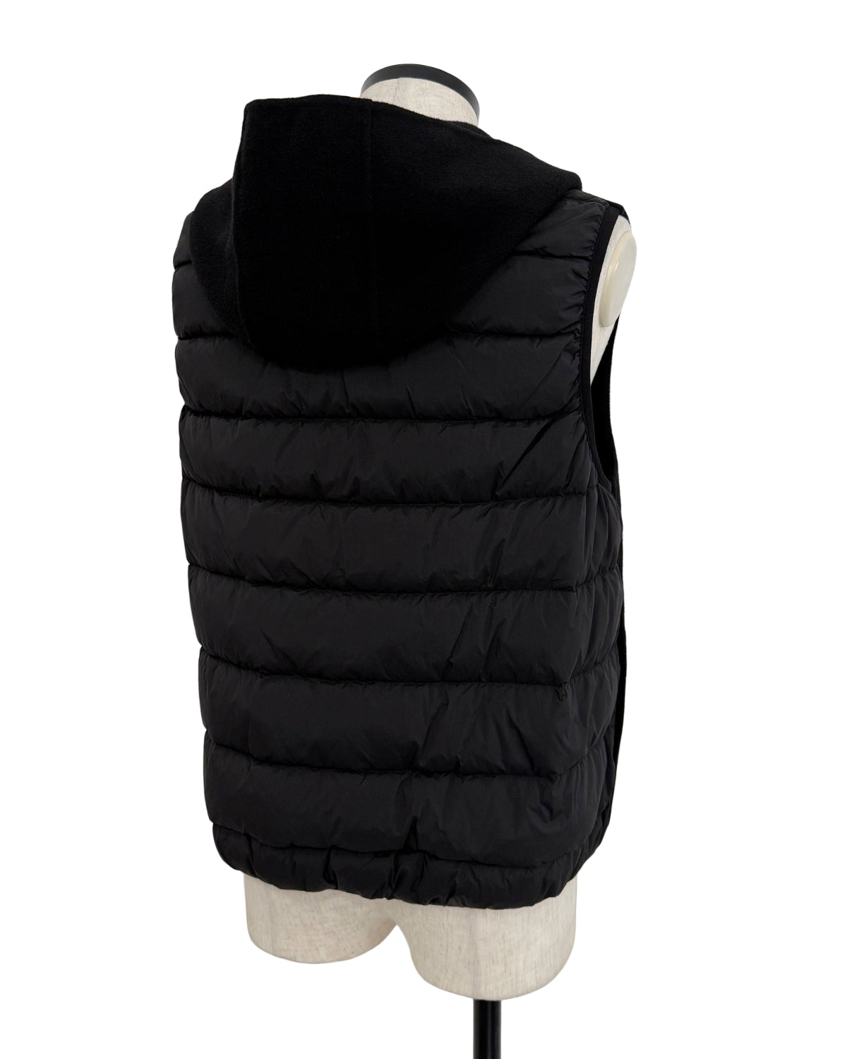 ②ベスト:同生地を前身に、背面ダウン仕立てのフード付きベスト