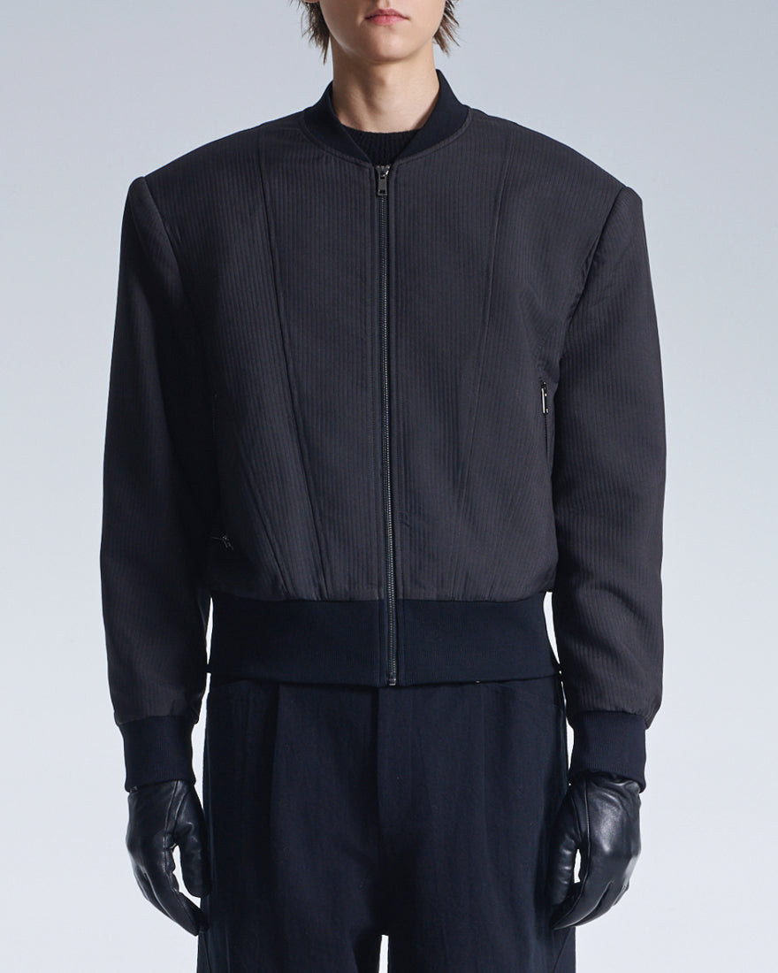 HARRISON WONG / Stripe Texture Zipper Jacket With Power Shoulder