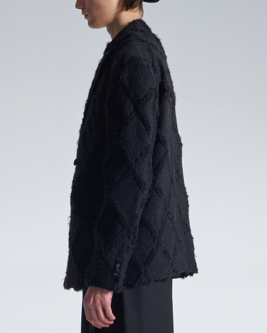 HARRISON WONG / Ripped Diamond Pattern No Collar DB Blazer