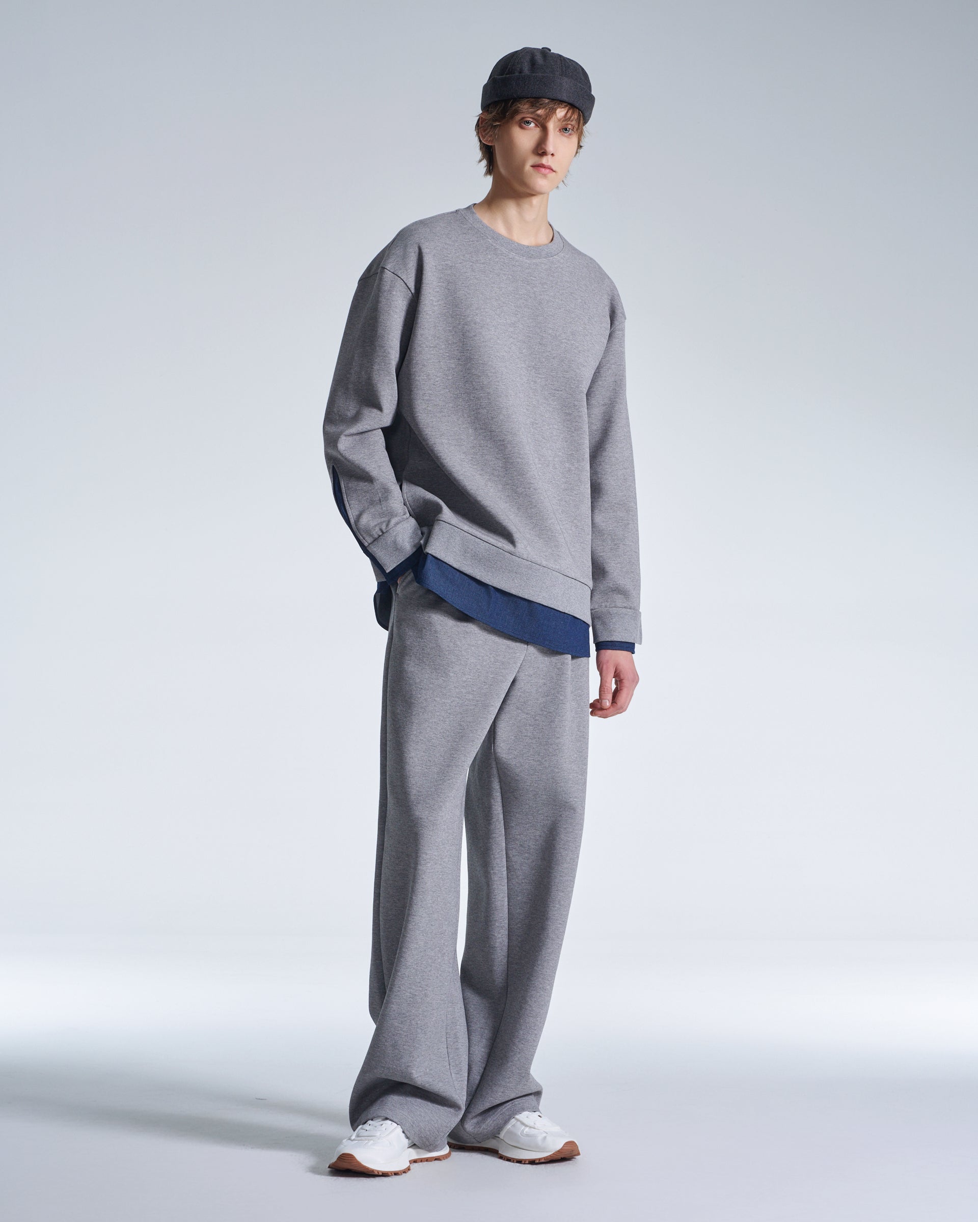 HARRISON WONG / Sweatshirt With Denim Hem - Grey