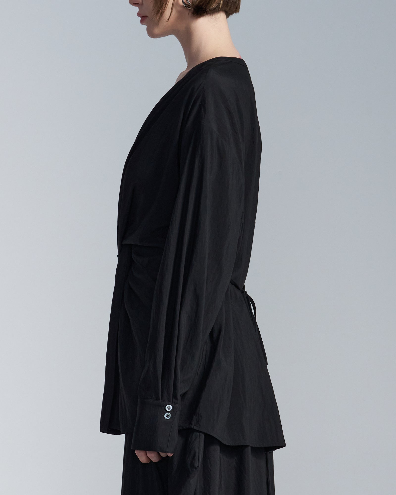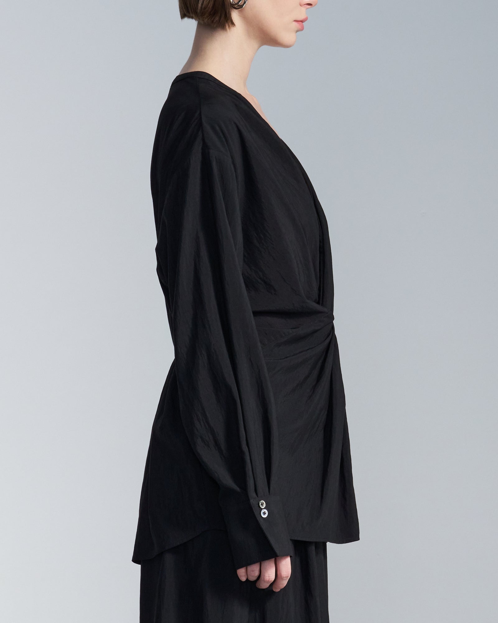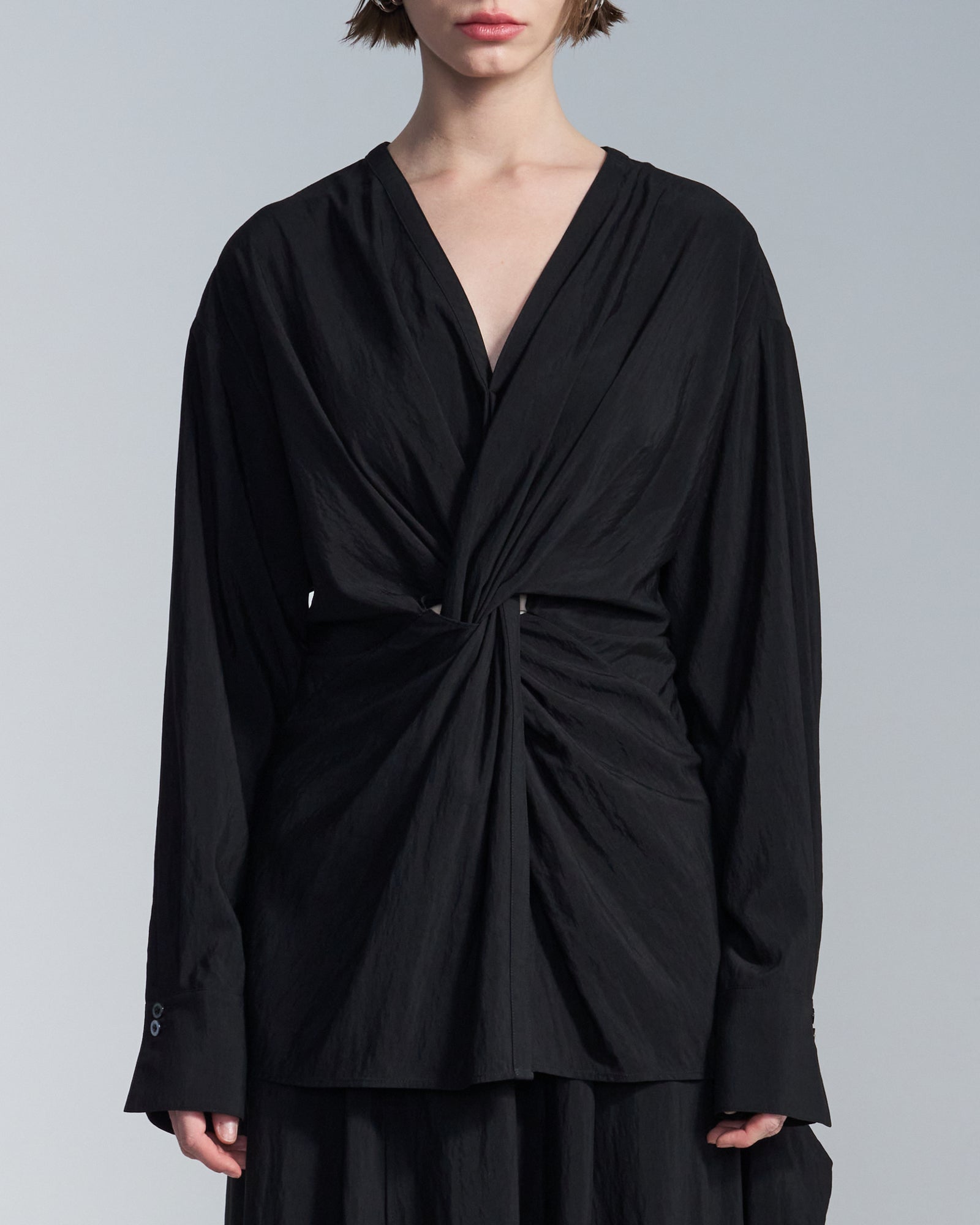 HARRISON WONG / Rayon Cupro V Neck Shirt With Twisted