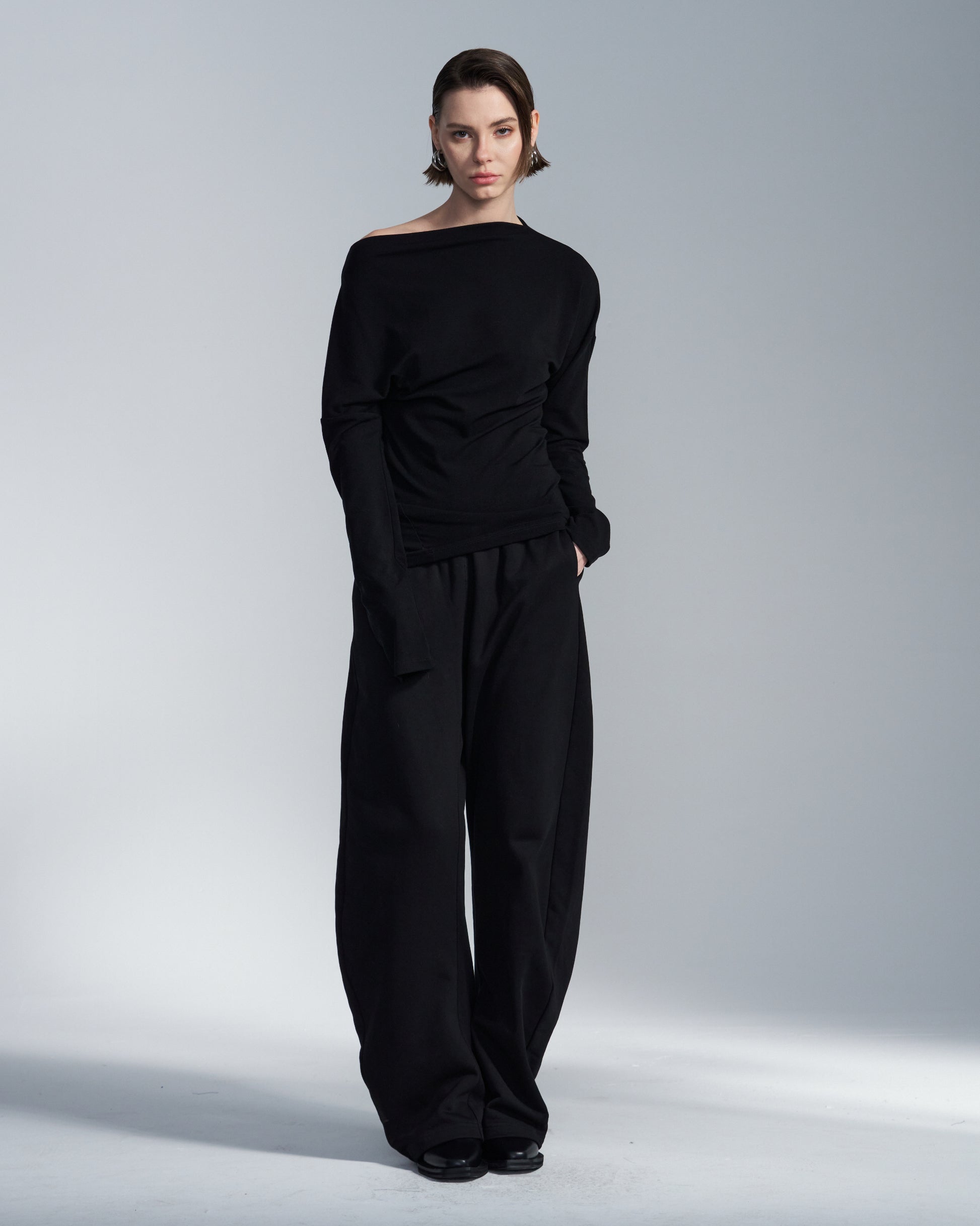 HARRISON WONG / Lyocell Wool Boat Neck Long Sleeve T-Shirt