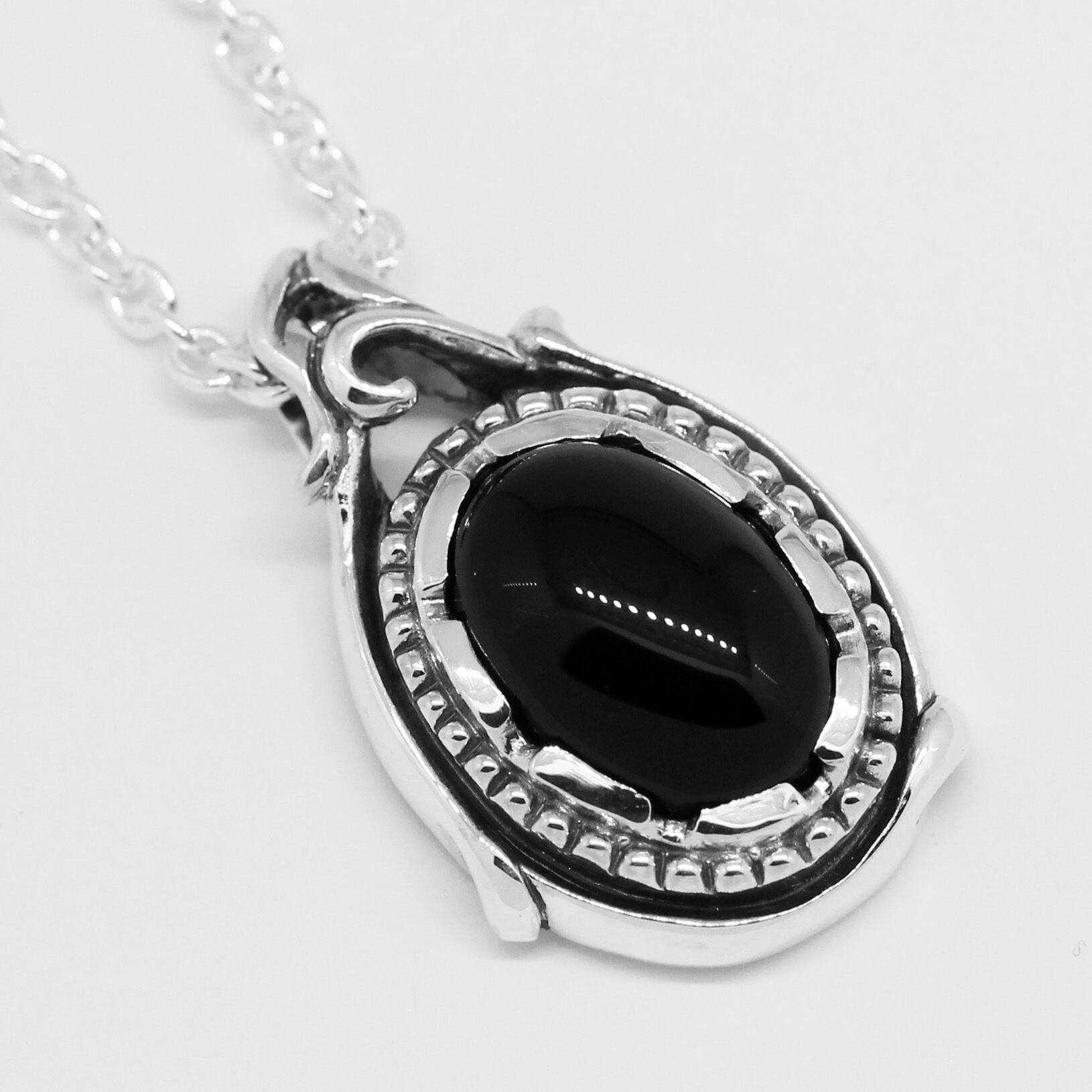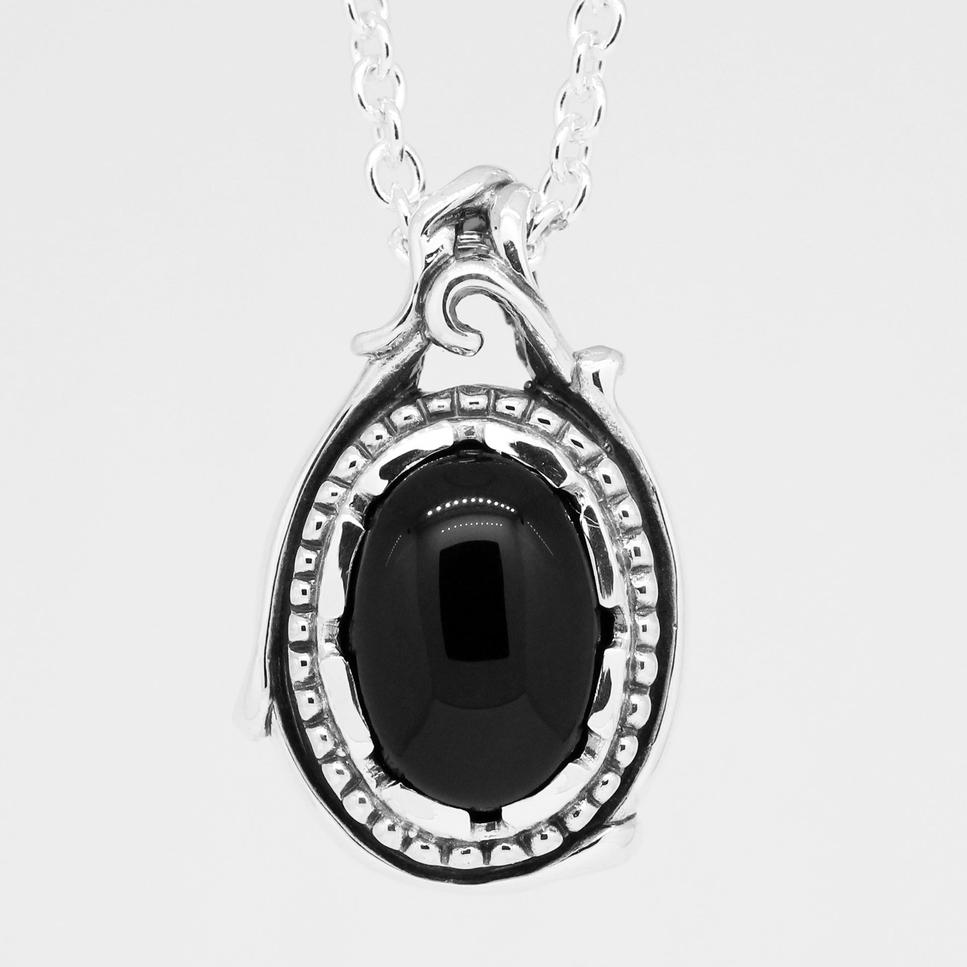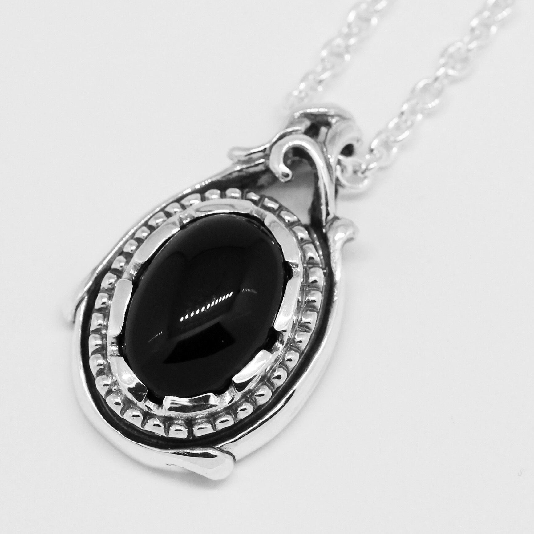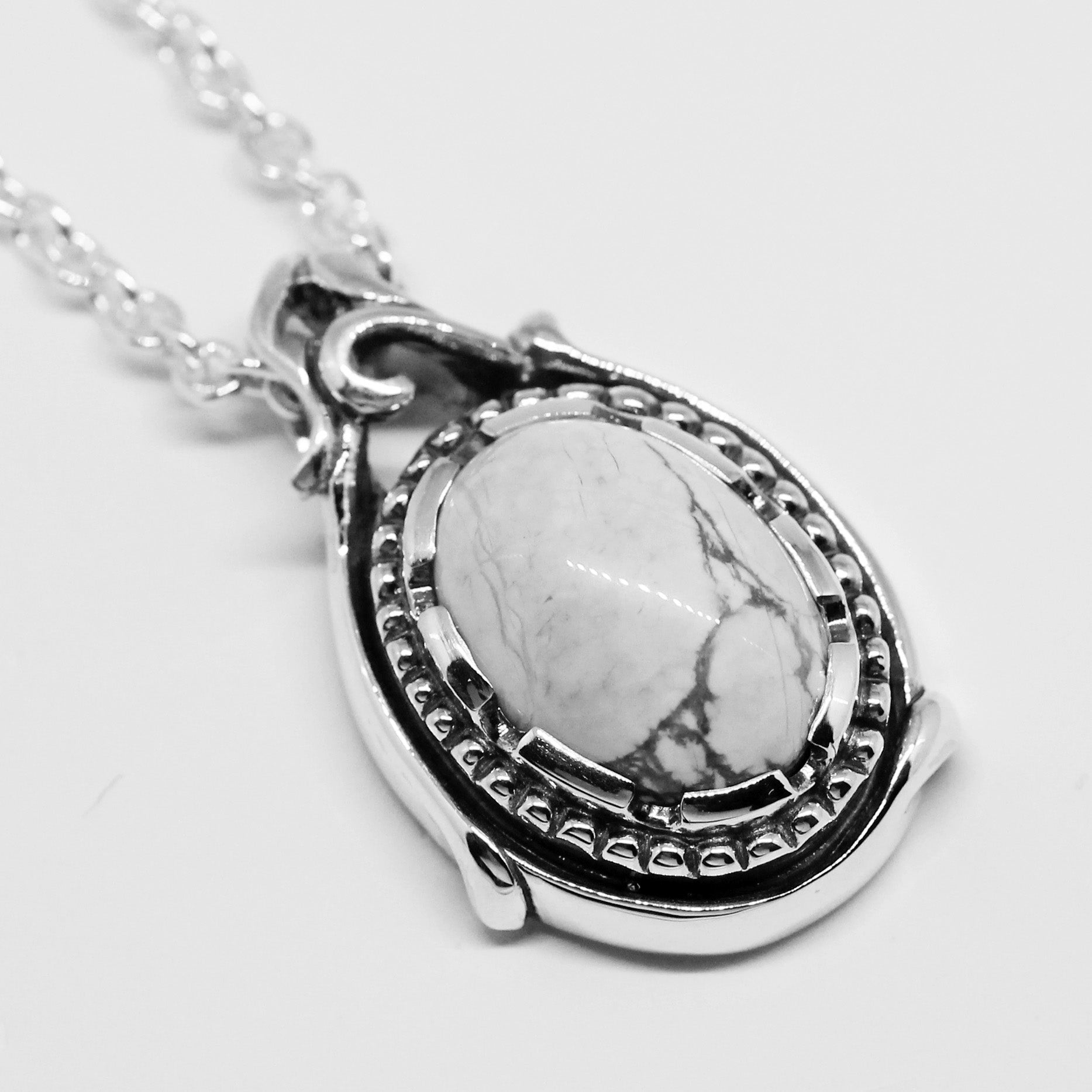 天然石を使用した規則的な構成の中で、曲線がバチカン部分で不規則に絡み合うペンダント。