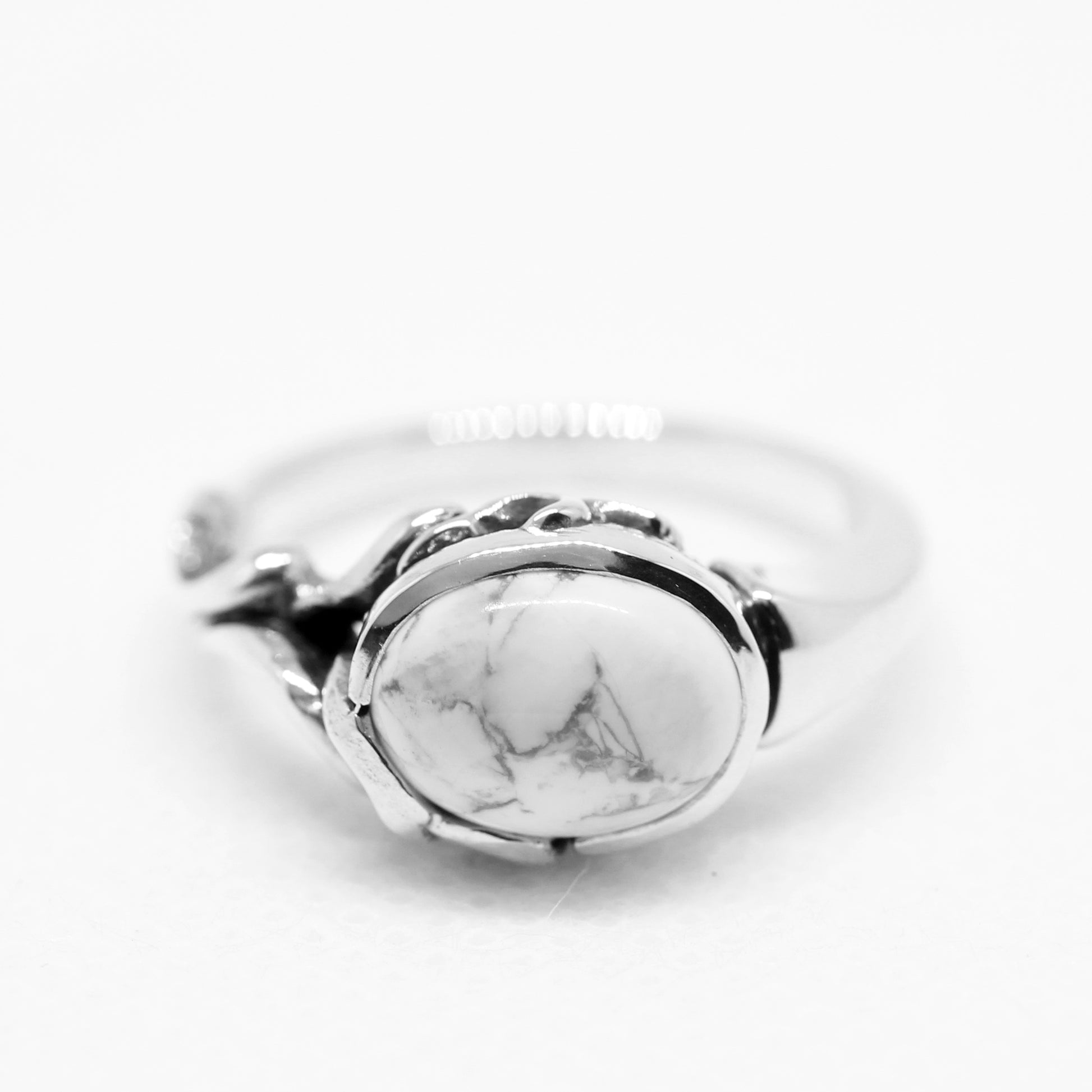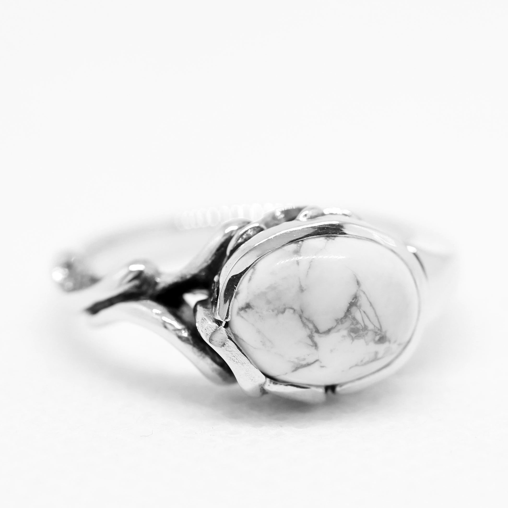 オーバルのマグネサイトを横向きに使用。細身な中にも動きを見せるデザインで、ブランドの持ち味をしっかりと感じられるリングです。