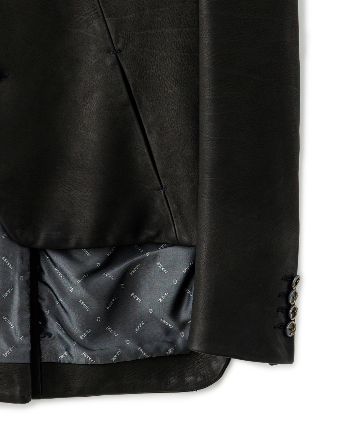 Bennu / Japanese Calf Leather Lapelless Jacket with SV925 Button
