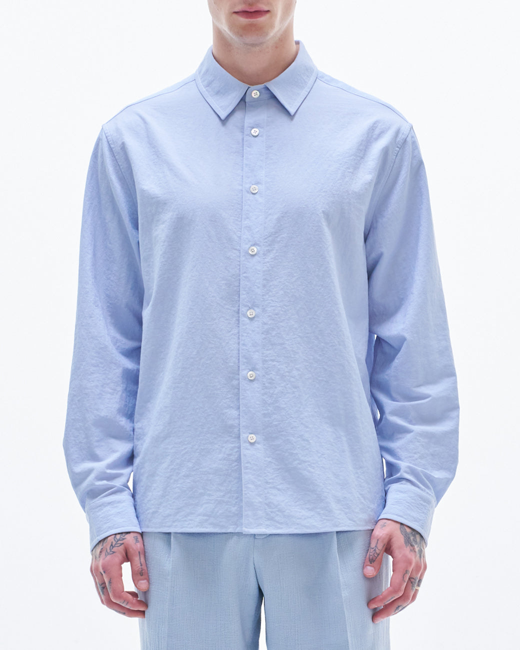 HARRISON WONG / Nylon Cotton Shirt With Color Contrast - Blue