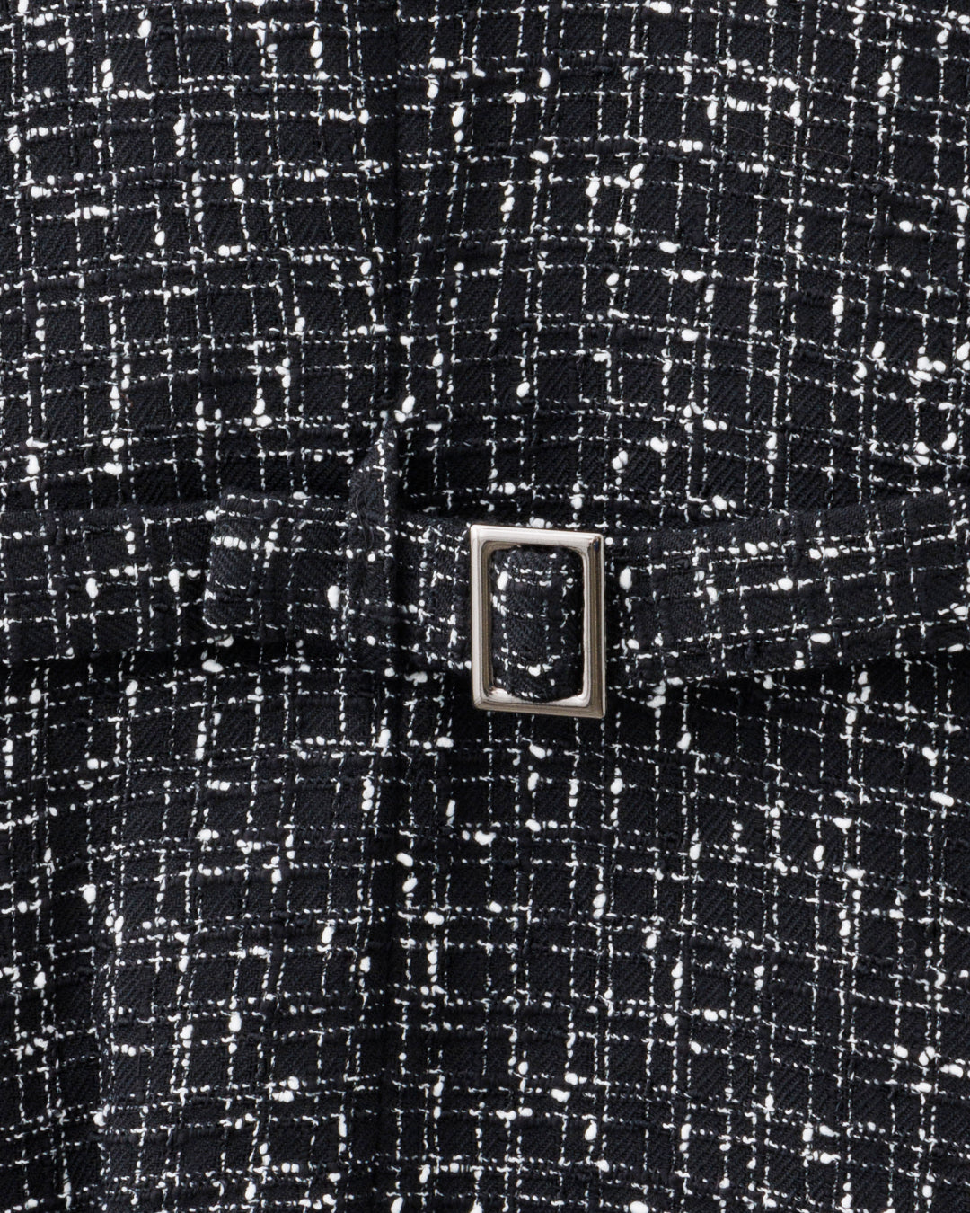 ネップを含め黒白の糸がしっかりと交錯した織り目を持ち、軽く清涼感のあるツイード生地です。