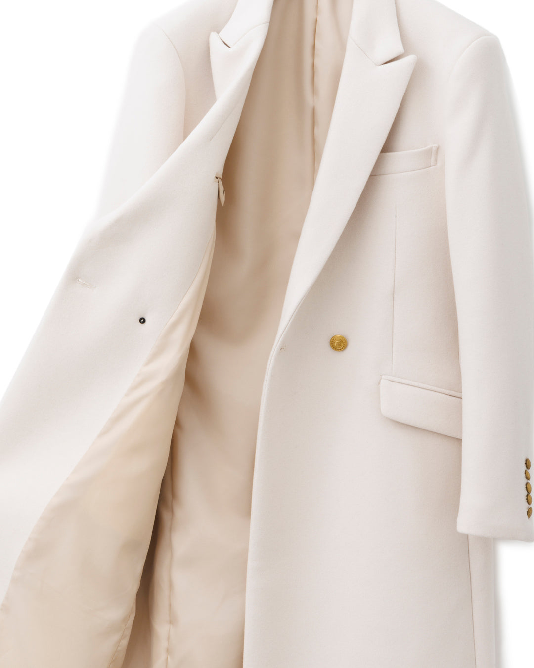ys Yuji SUGENO / Semi-Double Long Chester Coat with Gold Buttons - OFFWHITE