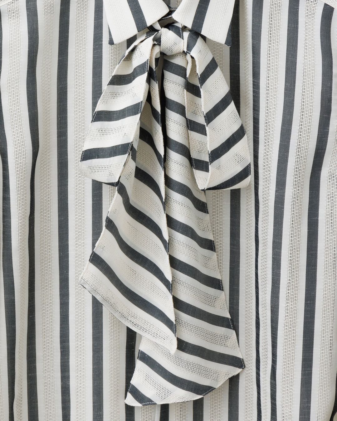 ys Yuji SUGENO / Karami Stripe Regular Shirt with Ascot Stole - IVORY