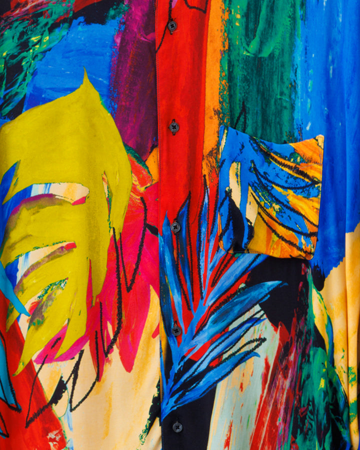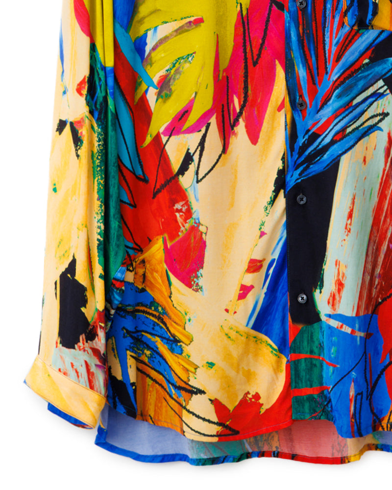 多彩な色使いや躍動感のあるストローク、まるで現代美術の絵画をそのままの1枚の洋服にしたようなアーティスティックな1着です。