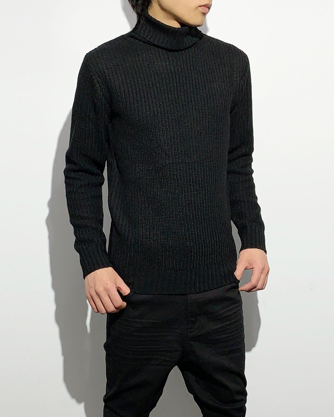 首のラインをキレイに見せながら、コートやジャケットのインナーにおいてもどこか雰囲気ある大人なルックをつくるタートルネック。着用を重ねても緩みを起こさないよう編地を変化させ、しっかりと外気の侵入を防ぎつつ、アウターの着用感に大きく干渉しない細身のシルエットに仕上げています。