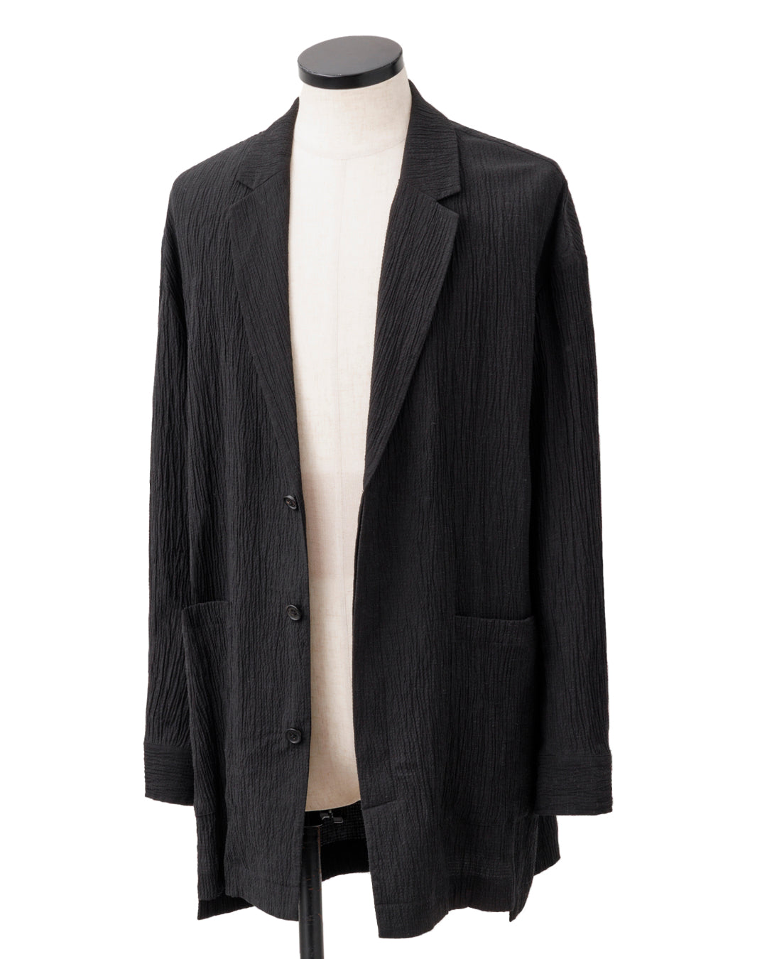 ヒップにかかるプラスの丈感が、デイリーなカーディガンのような抜け感を。ユニークな表面感を特徴に、薄手で肌離れも良く吸水速乾。春先から夏場にも軽く羽織りやすい1枚仕立てのカーディガンジャケットです。