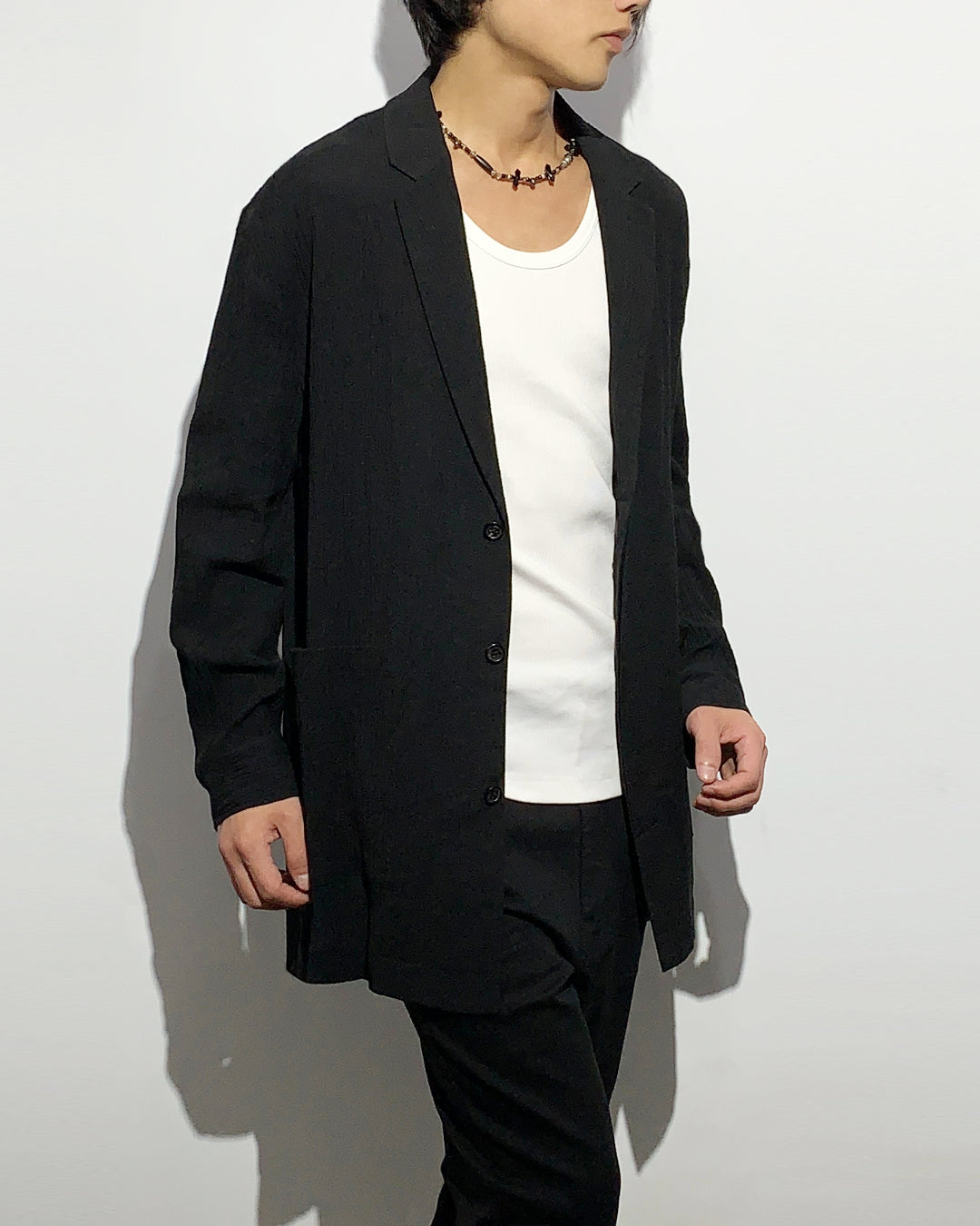 HARRISON WONG / Smocking Textured Long Blazer