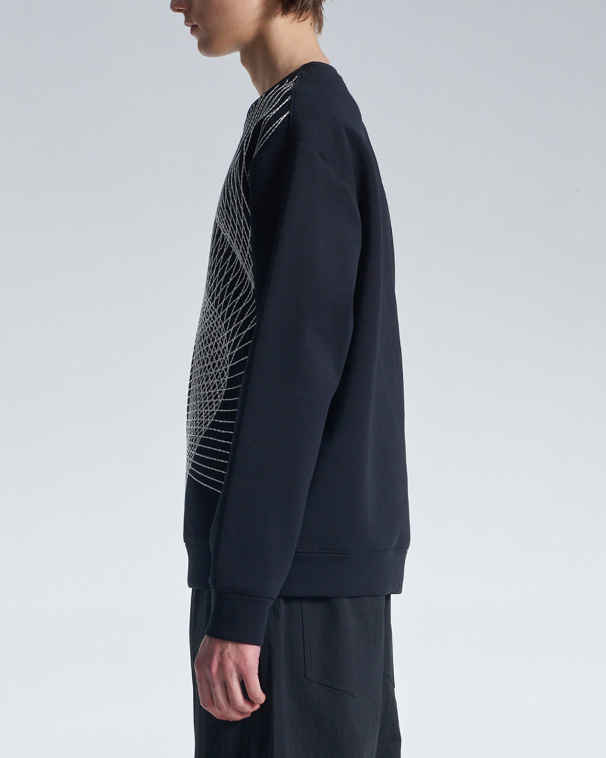 HARRISON WONG / Sweatshirt With Twisted Wavy Lines Embroidery - Black