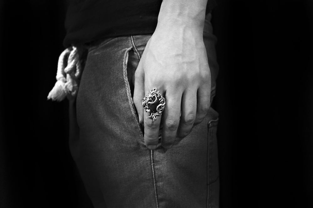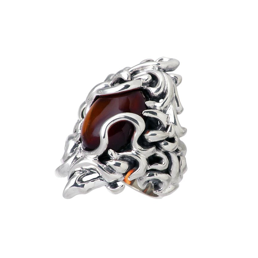 「曲線」と言う名の力のある流れが、石の色と混ざり合うことで生まれる世界を表現したリング。画像は「チェリーアンバー」を使用。