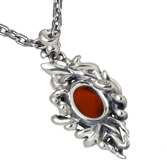 「曲線」と言う名の力のある流れが、石の色と混ざり合うことで生まれる世界を表現したペンダント。画像は「チェリーアンバー」を使用。