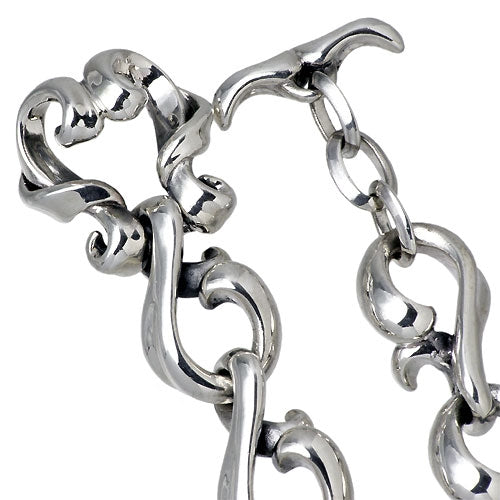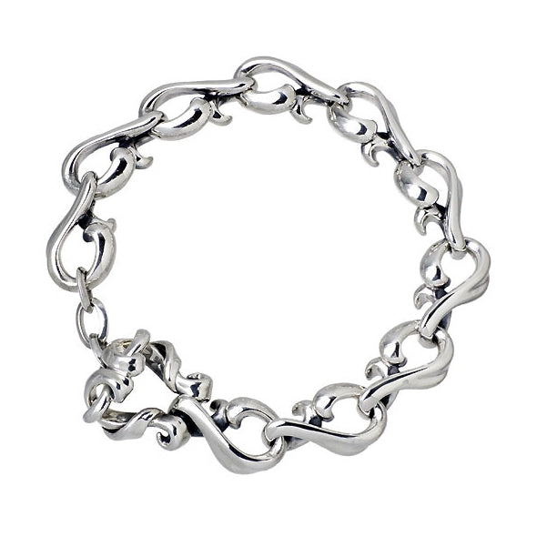 時に鋭く、時に滑らかに、それぞれのラインが交差し絡み合った瞬間、ひとつの形が生まれる。自然界の矛盾の無い「360℃の流れ」を意識したブレスレット。