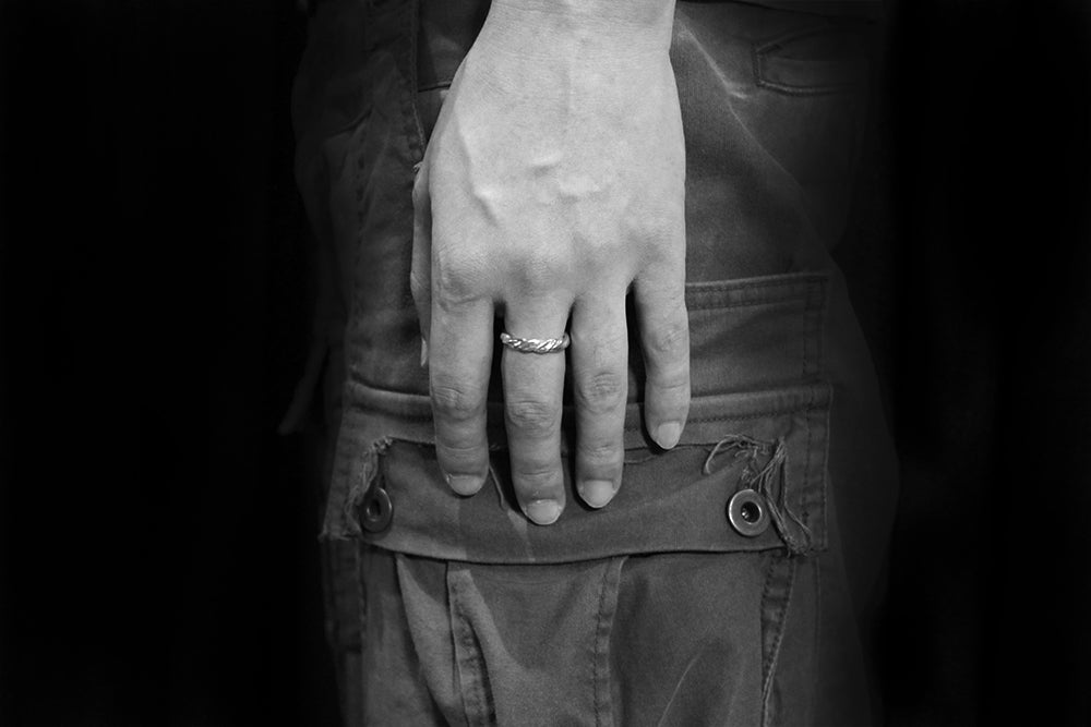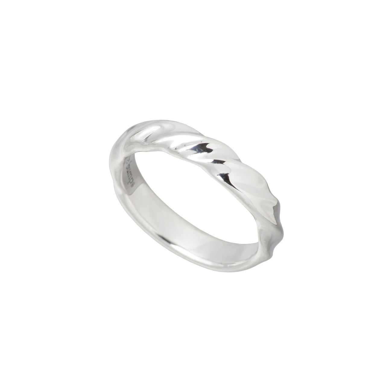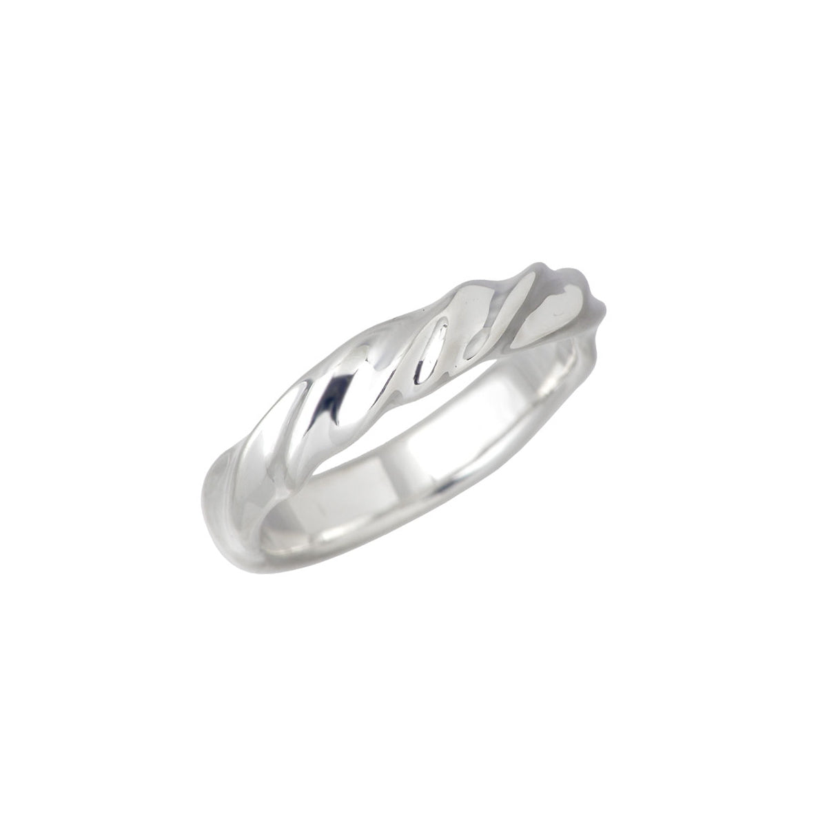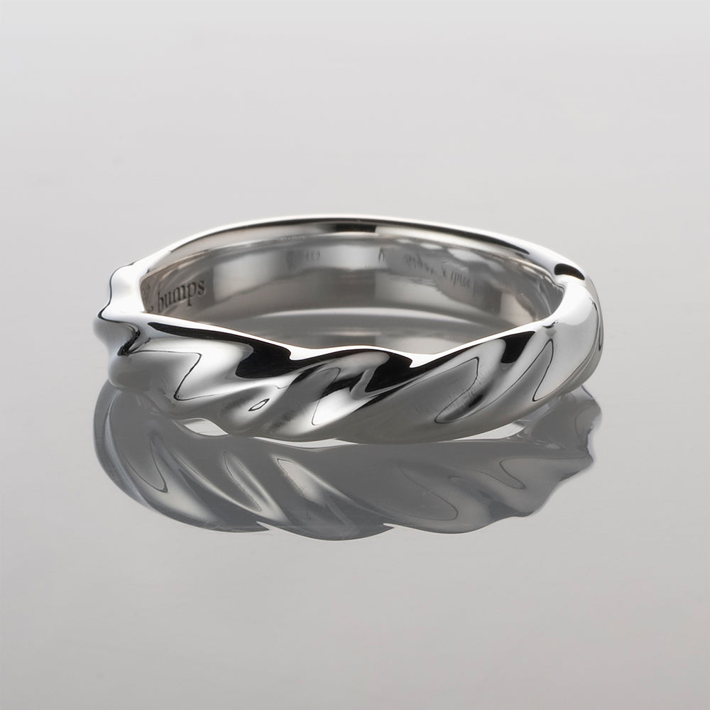 アパレルブランド「three bumps(スリーバンプス)」の持つ"ROCK"をテーマに曲線美をスタイリッシュに表現したリング。