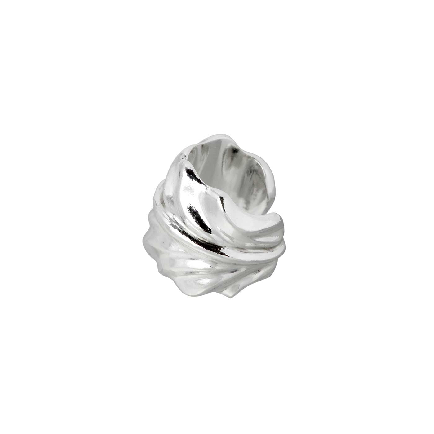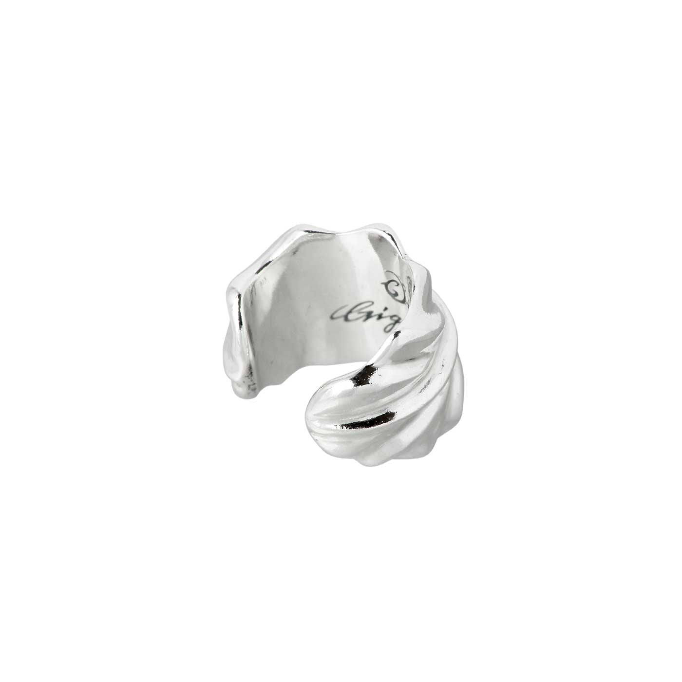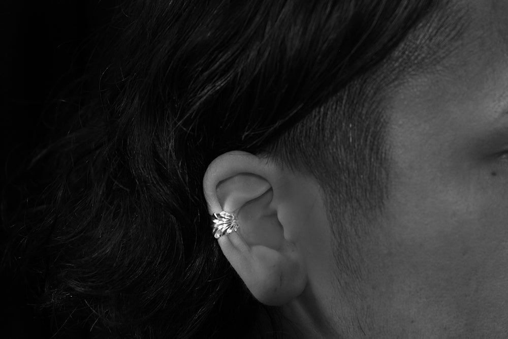 フェザーを銀の曲線で表現したイヤカフス。
