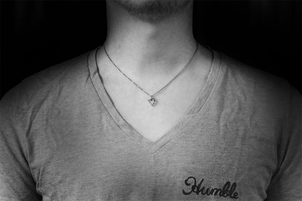 固さと温もりの融合。「面」と「蛇」を用いて、凛とした世界を表現したペンダント。