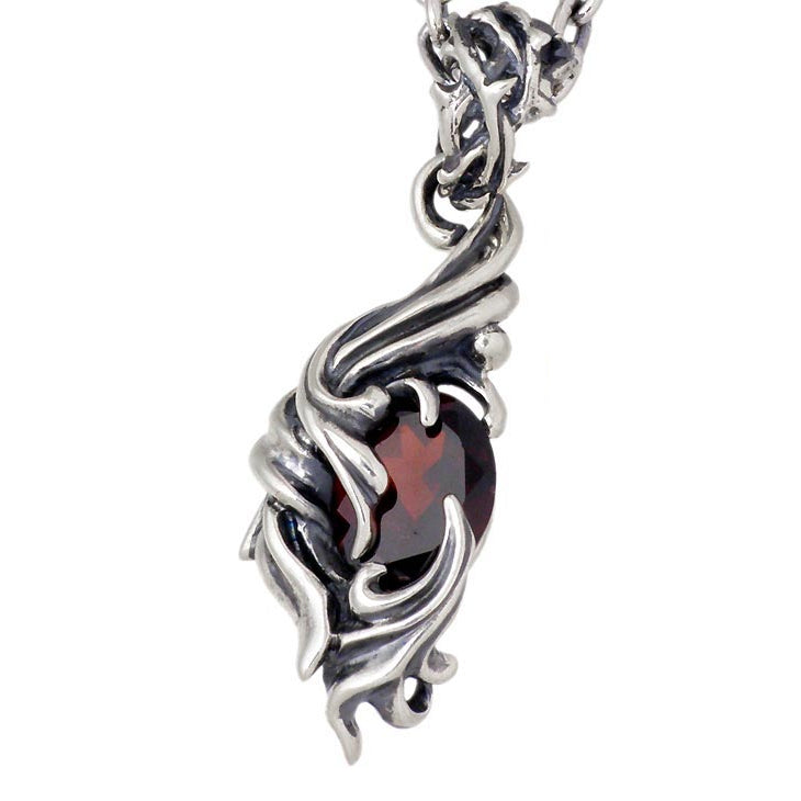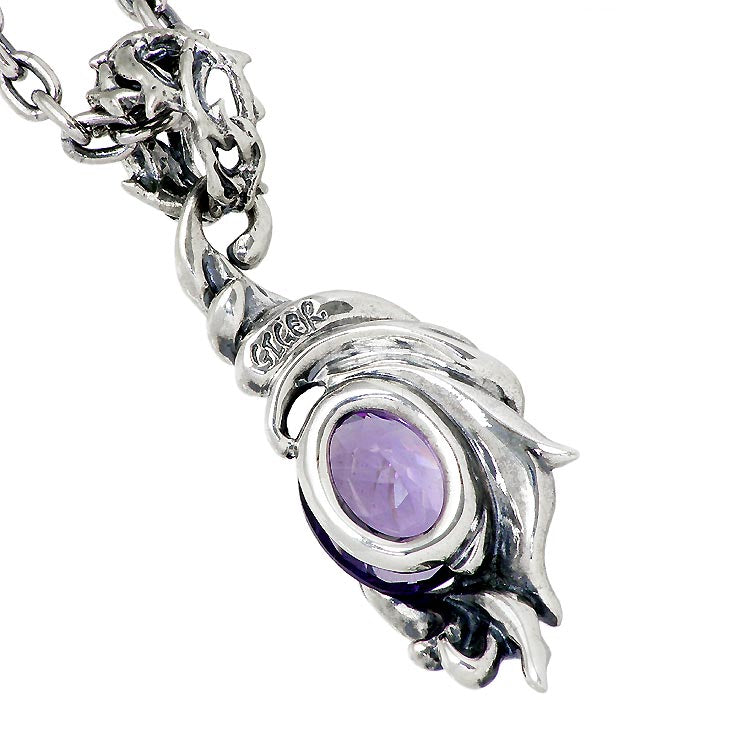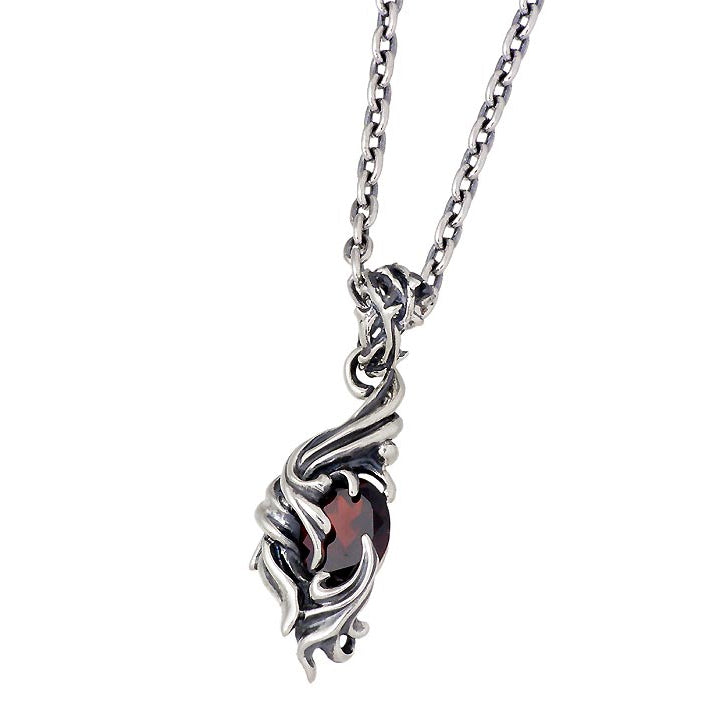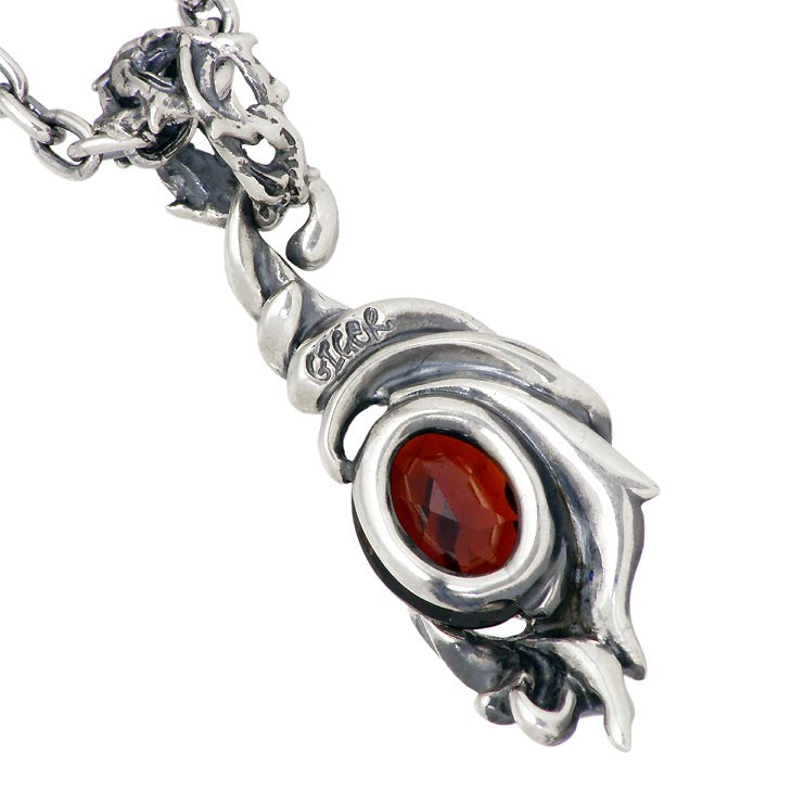 ブランドの頭文字「G」を力強く流れるようなレリーフデザインで表現したペンダント。画像は「ガーネット」「アメジスト」を使用。