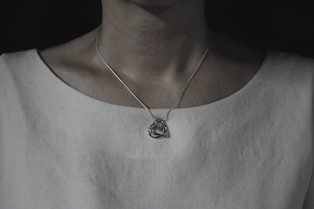 互いの想いが重なり合うかのように、2つのハートが1つのカタチとなったペンダント。