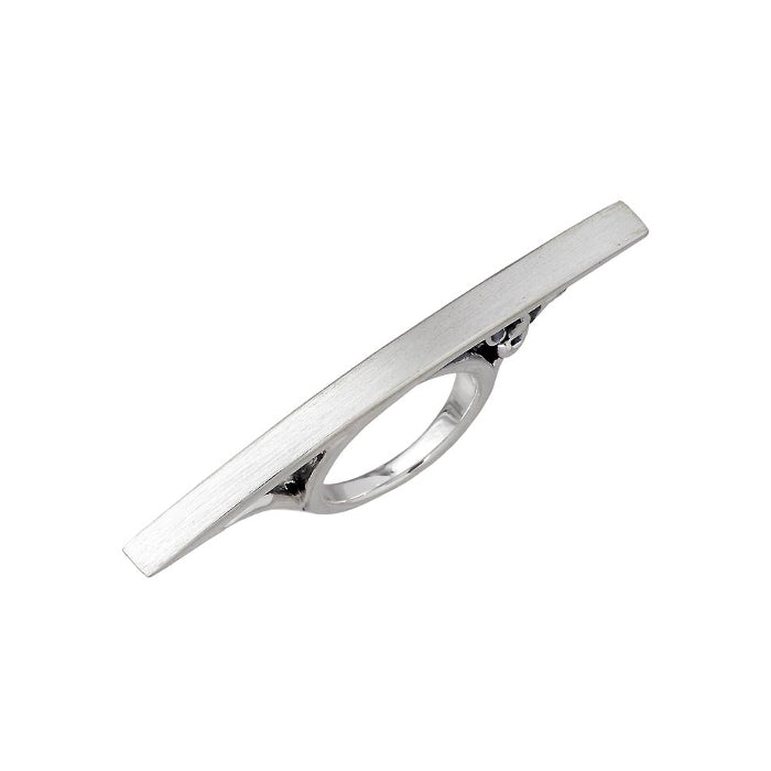 概念になかったリングの新提案。プレート部分は、サティーナ(横方向に細かな線を入れ表面の艶を消すテクスチャー)で仕上げたリング。