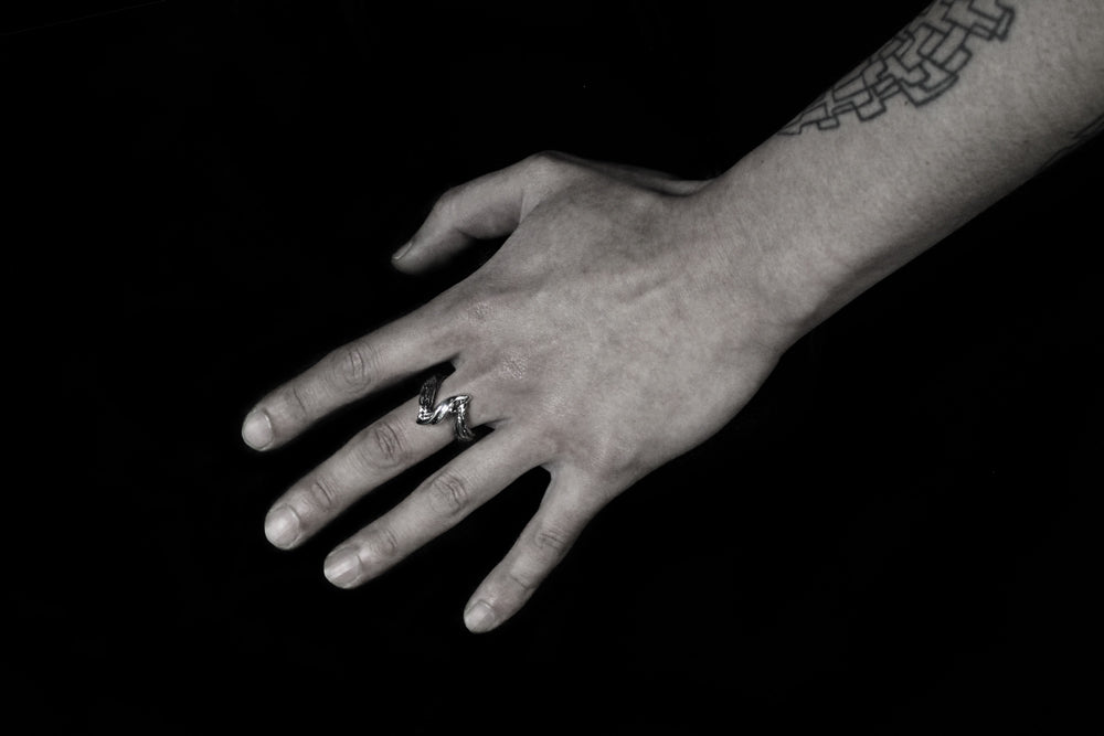 「自然界の曲線」と「銀の光沢の曲線」を掛け合わせた世界観を表現したリング。