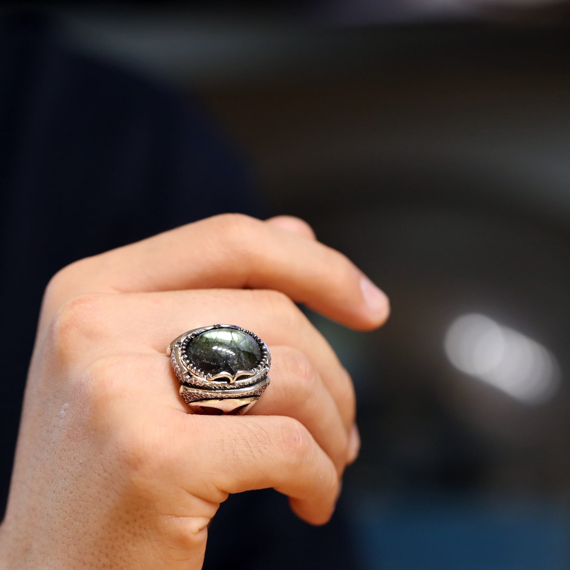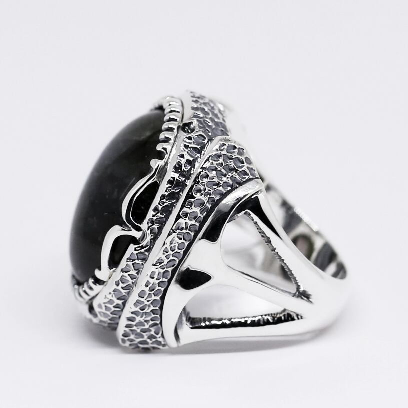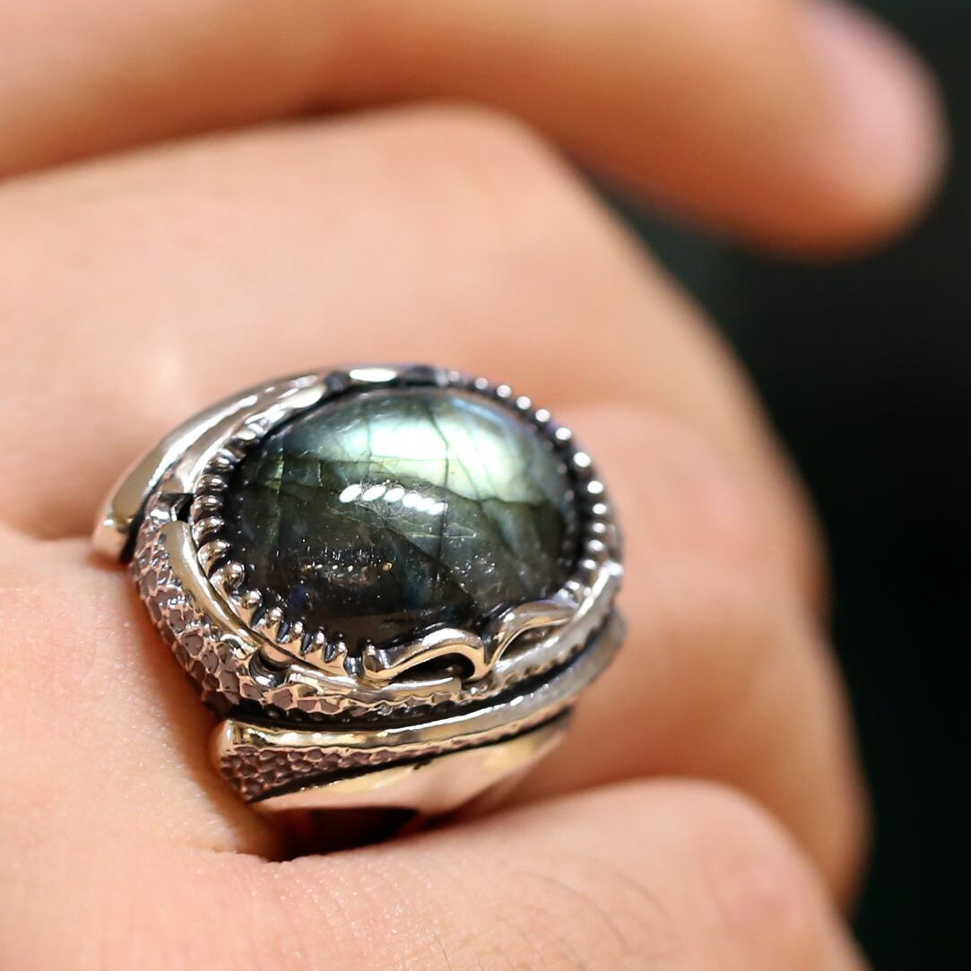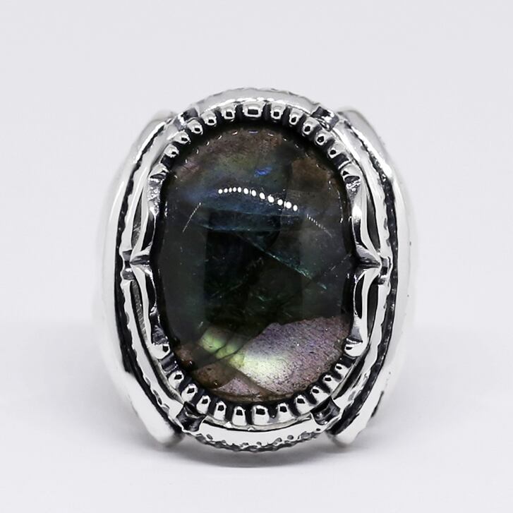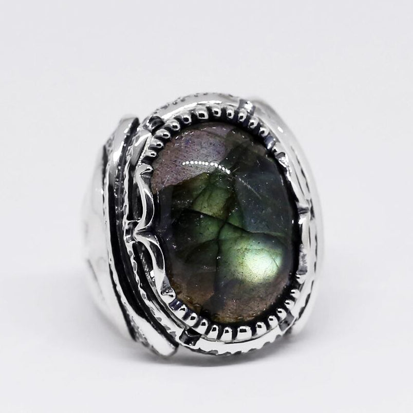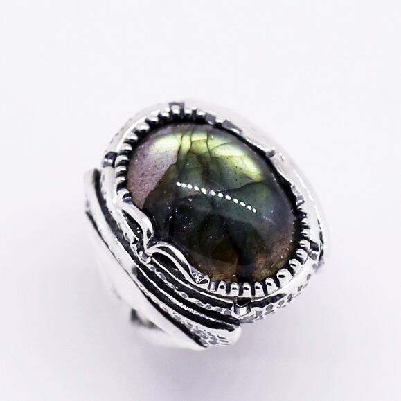 大粒のラブラドライトが主役のリング。