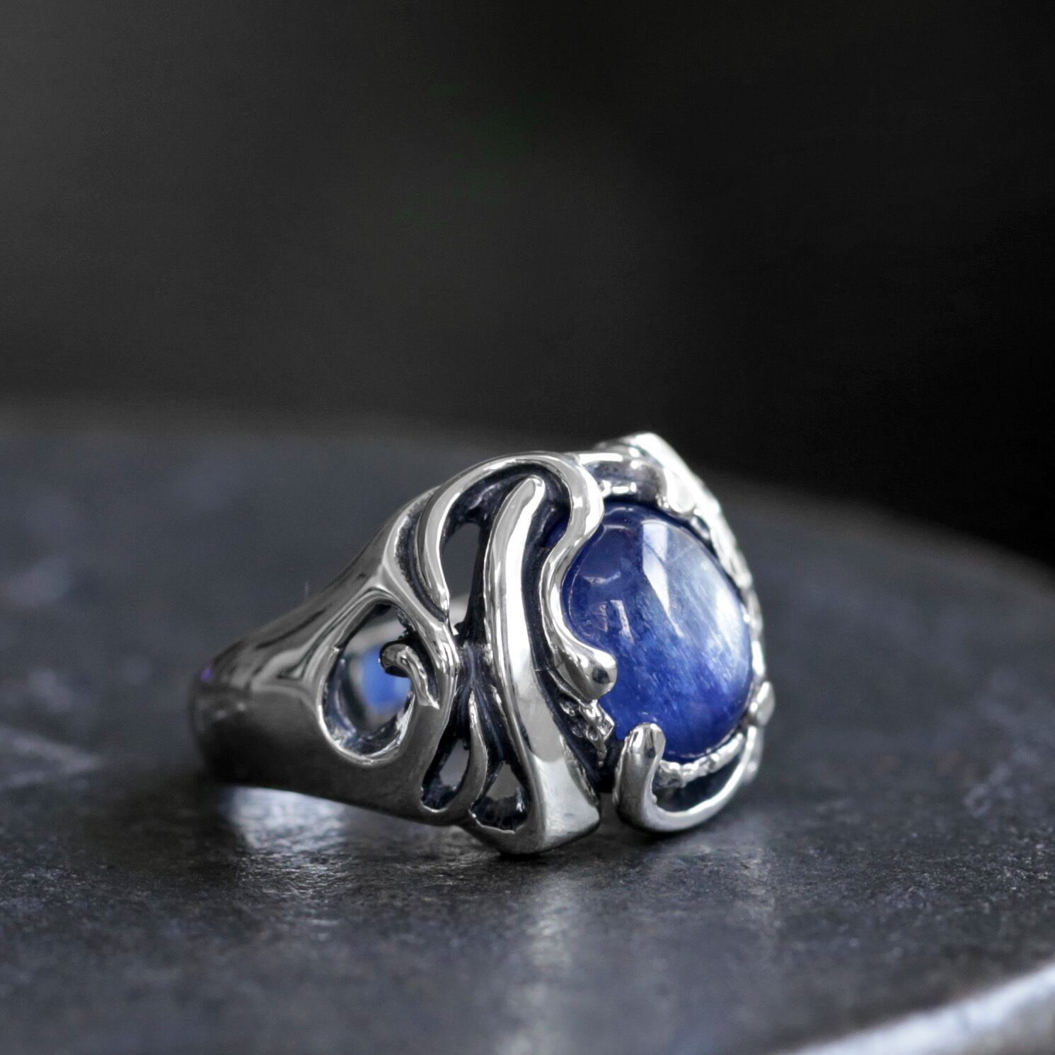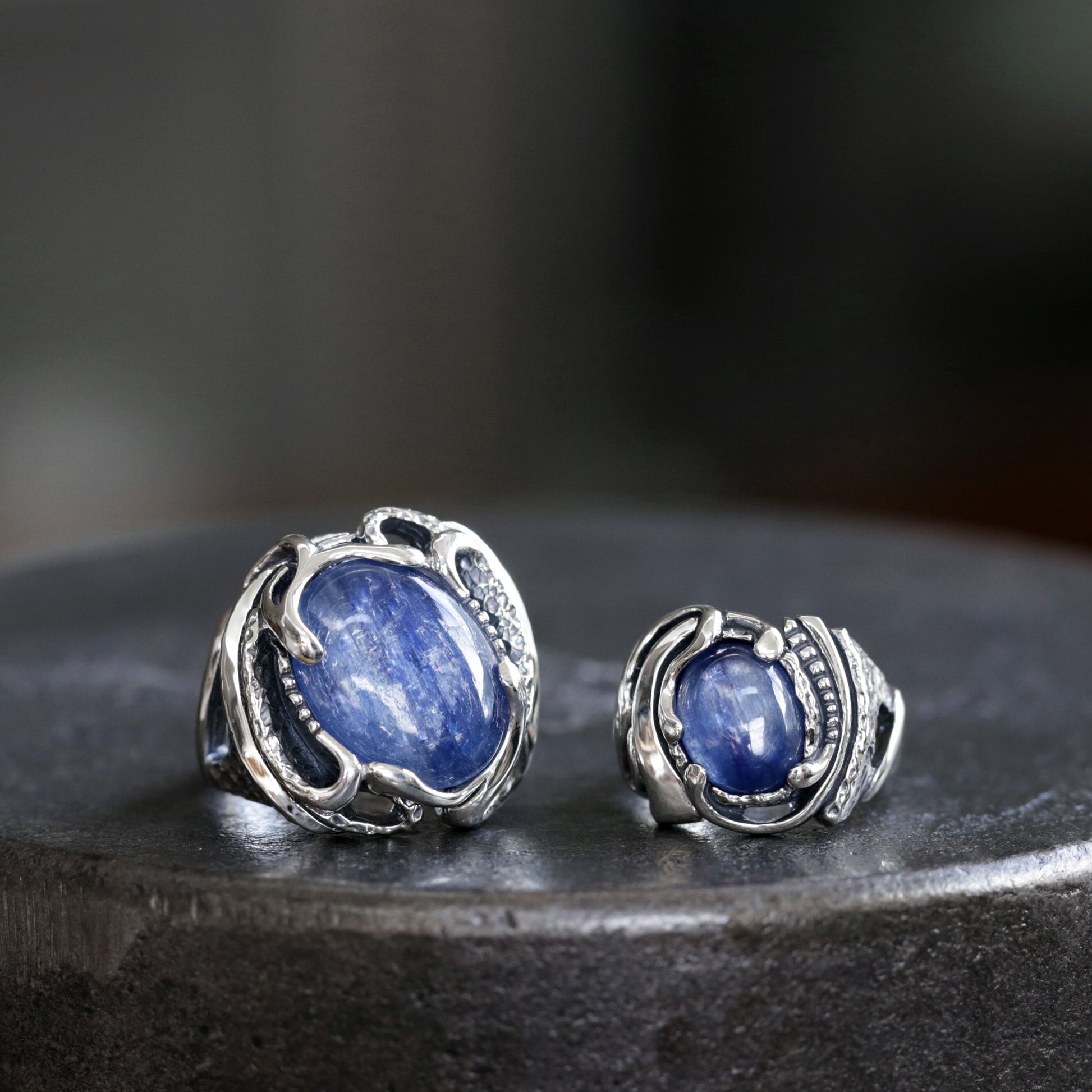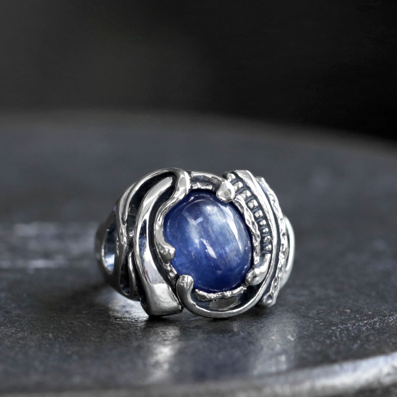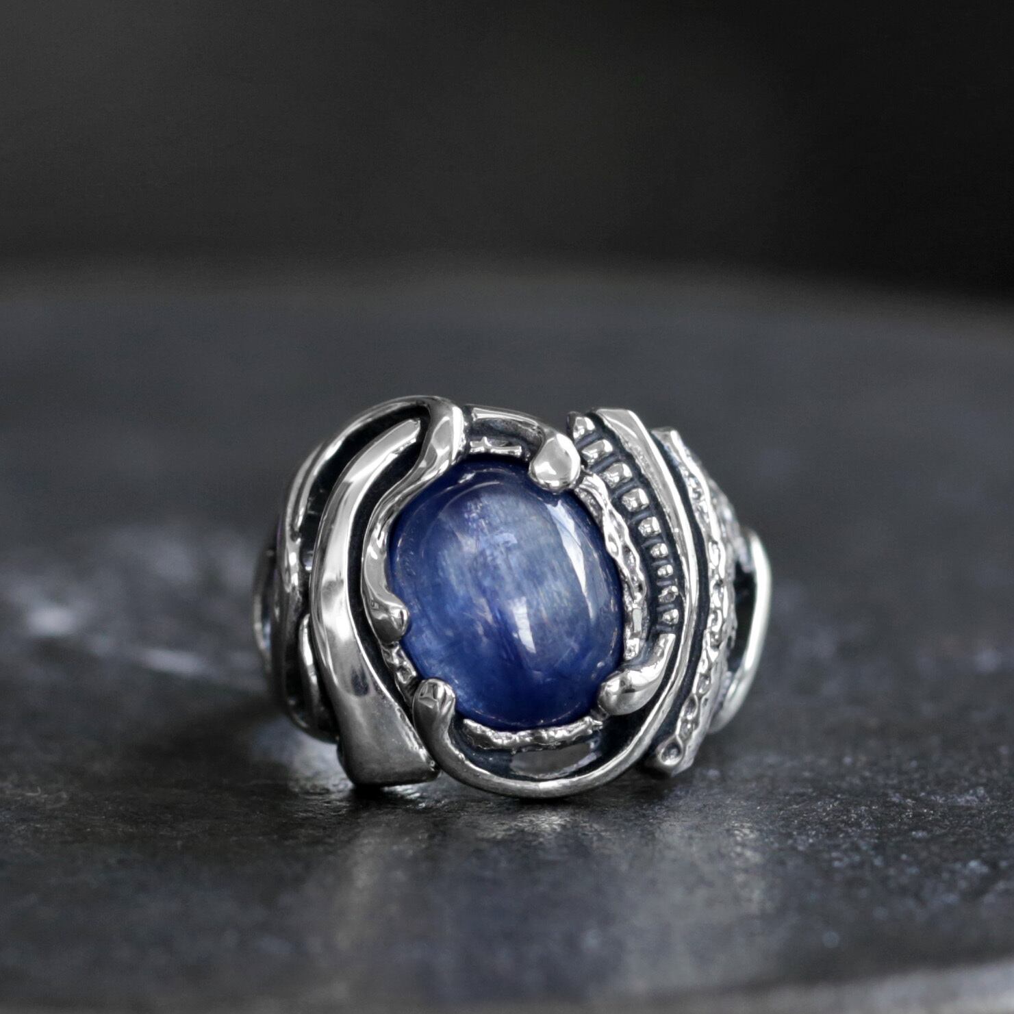ひとつの個体の中に、儚くも美しく重なり合う多様な青 ― 上質なサファイアを思い起こさせる豊かなブルーのカイヤナイトを用いたコレクションをお楽しみ下さい。