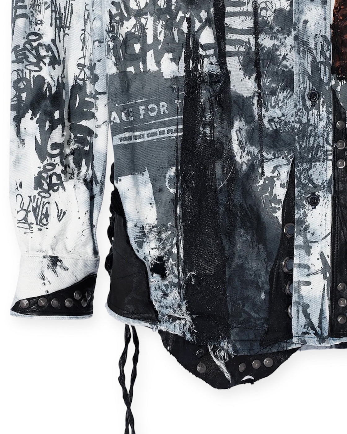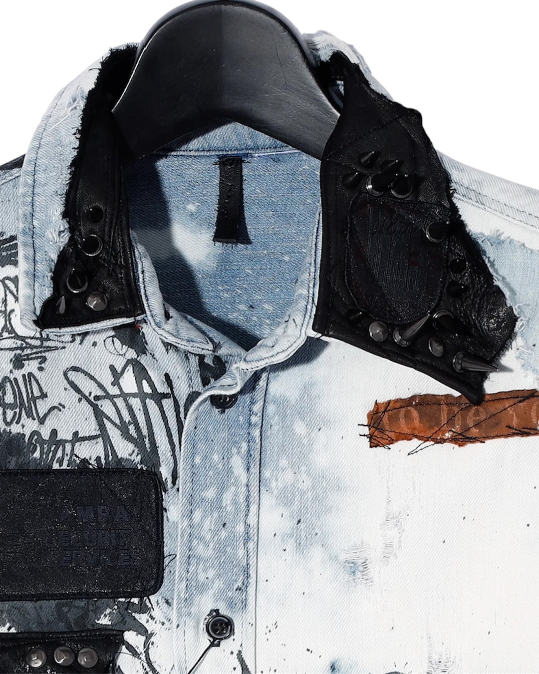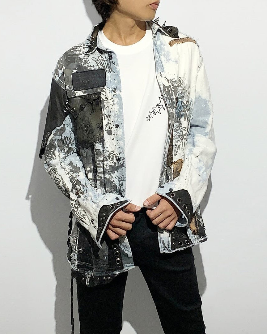 「デニムシャツをとことんロックテイストでリメイクした作品です。