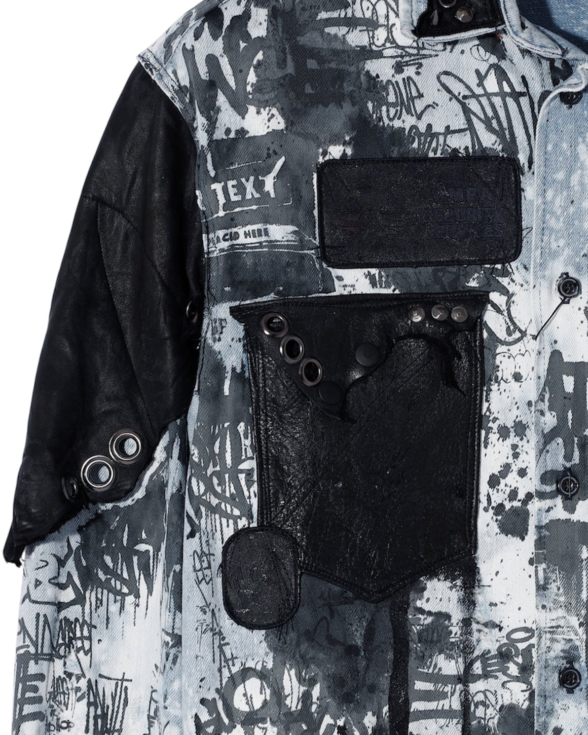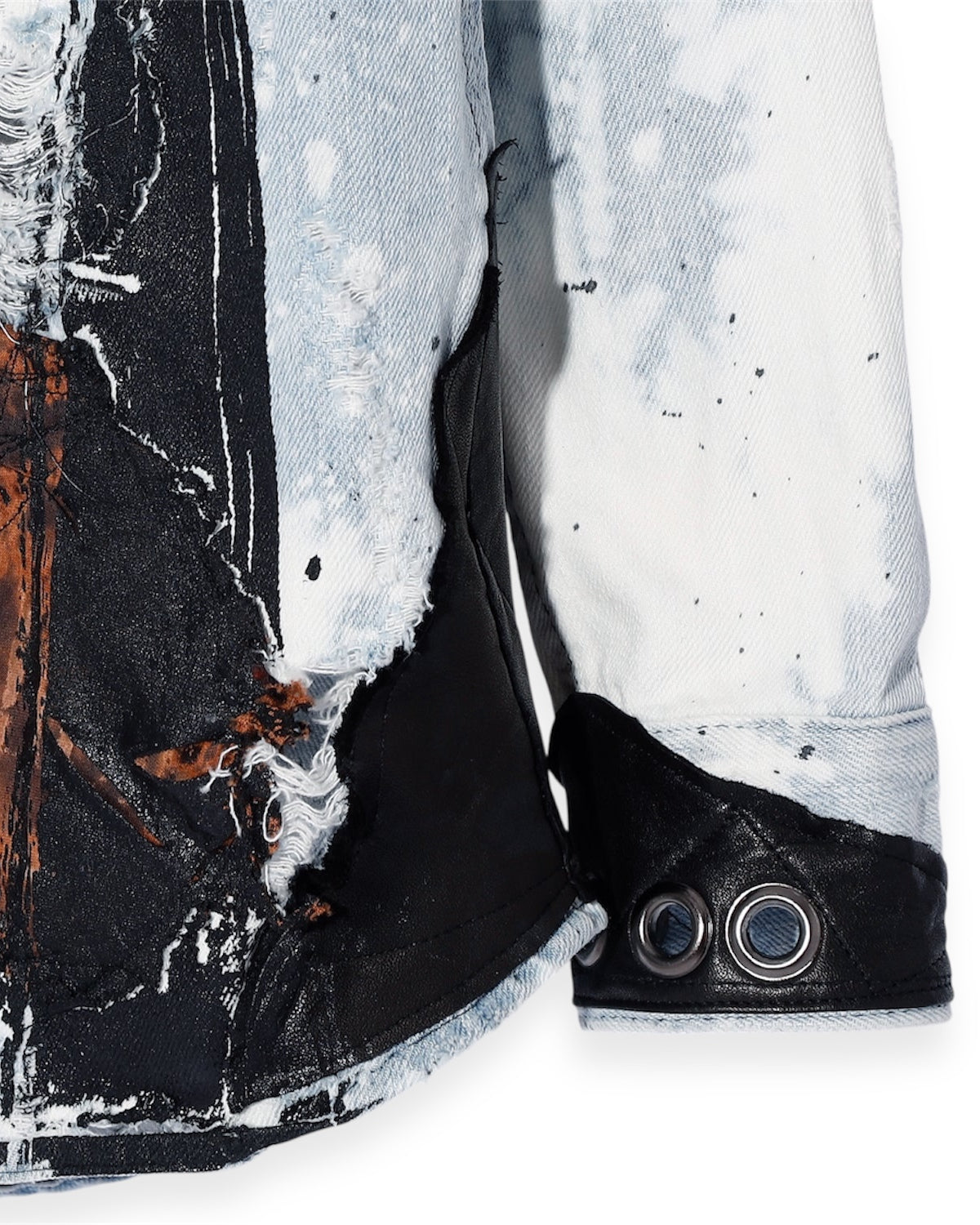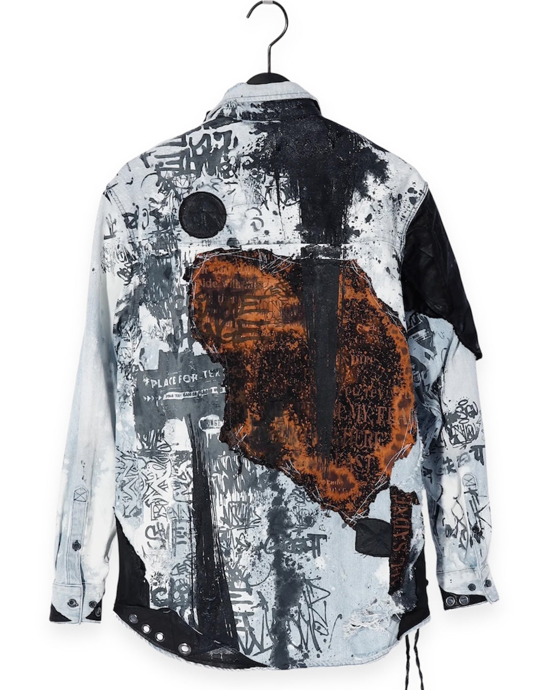 「デニムシャツをとことんロックテイストでリメイクした作品です。