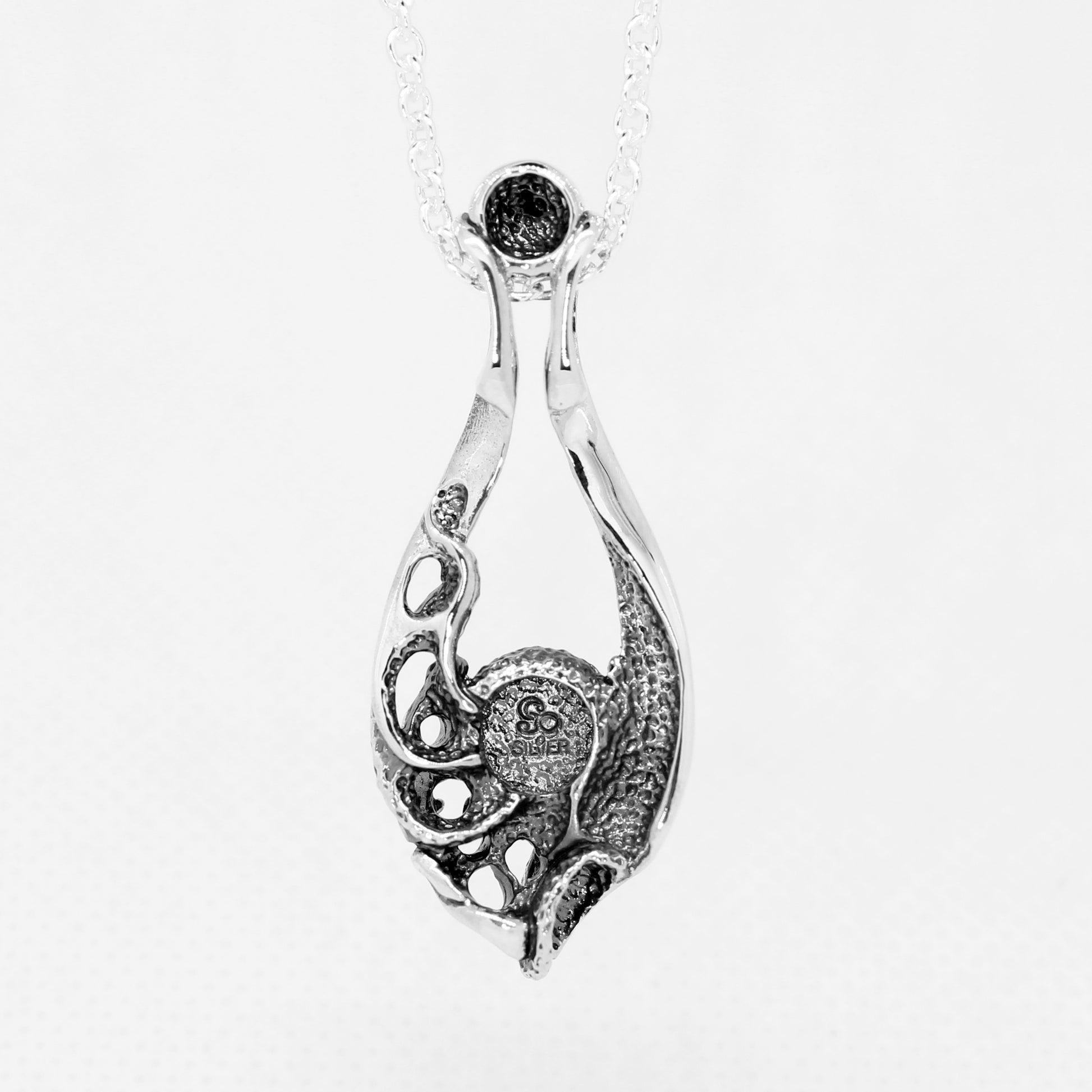 重心を下に置き、ラインと鏡面を活かした美しさを追求。ムーンストーンの落ち着いた輝きがさりげない主張を見せるペンダント。
