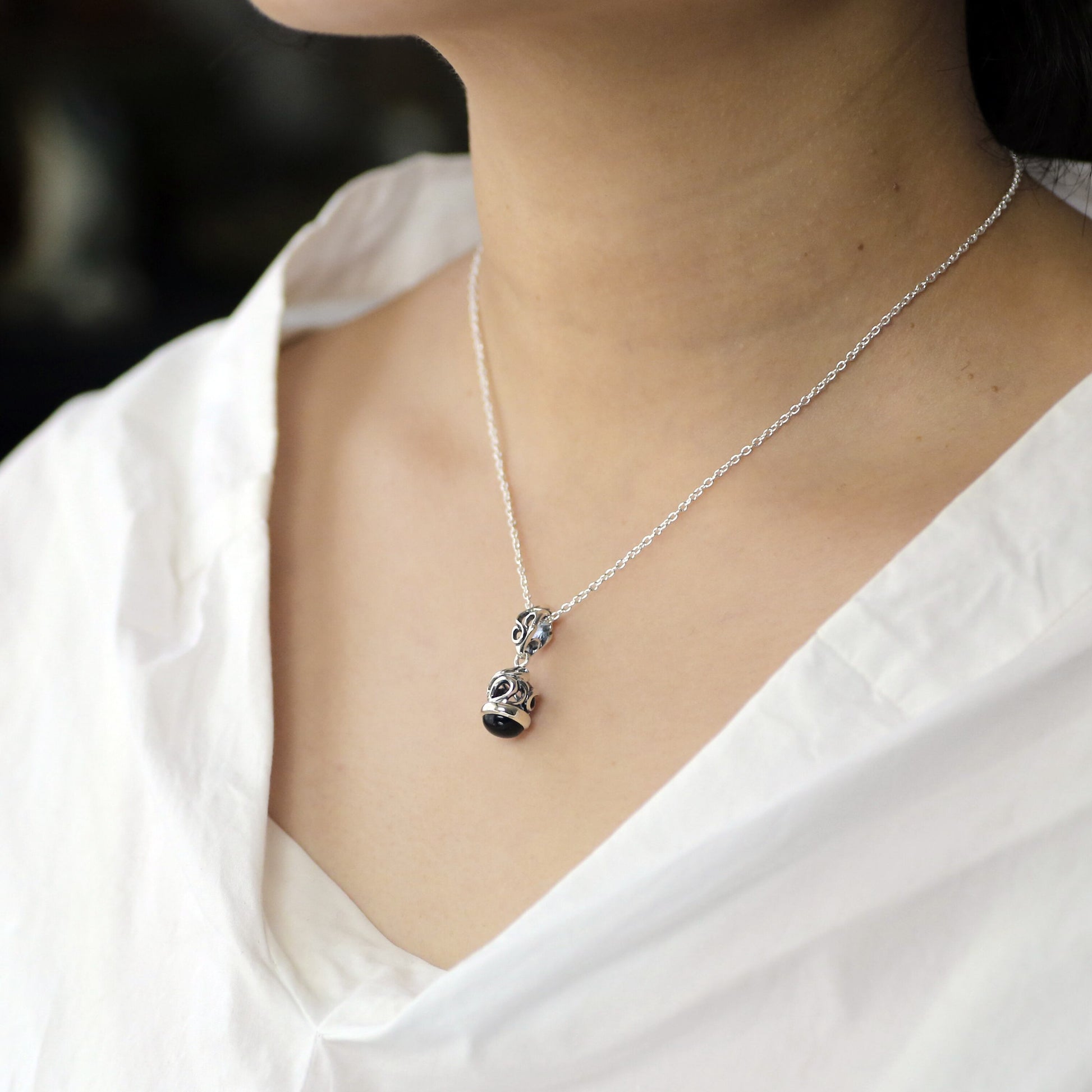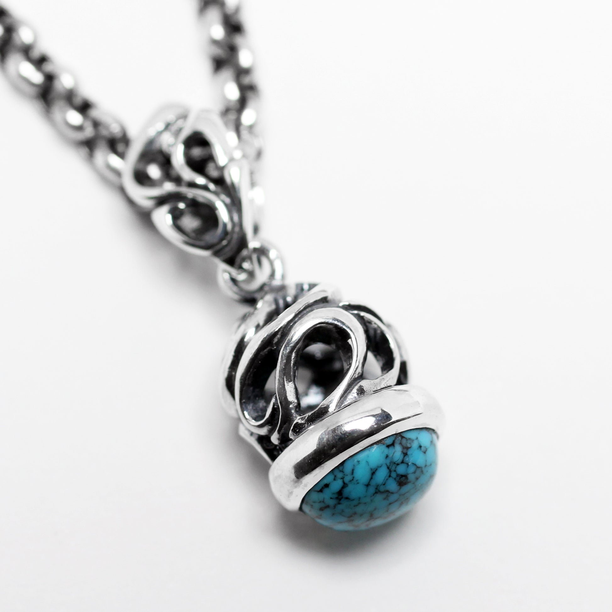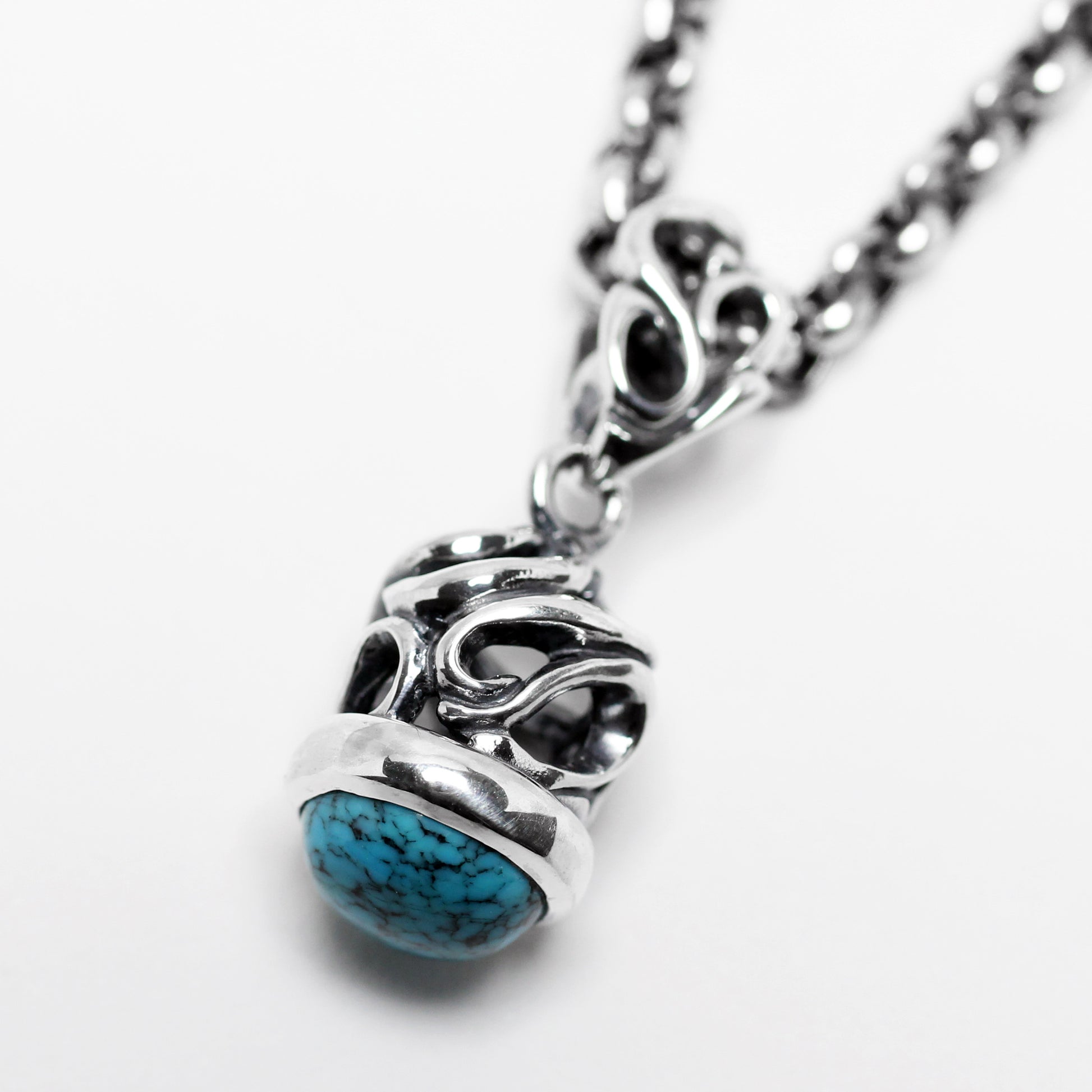 雫の中に流れるような曲線と透かしを融合させたペンダント。