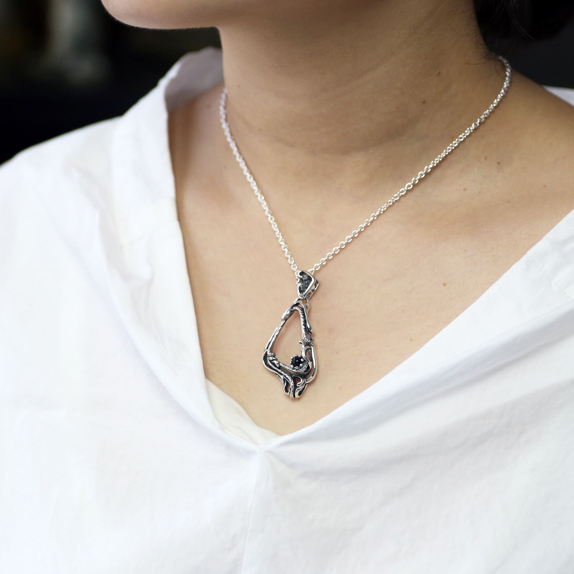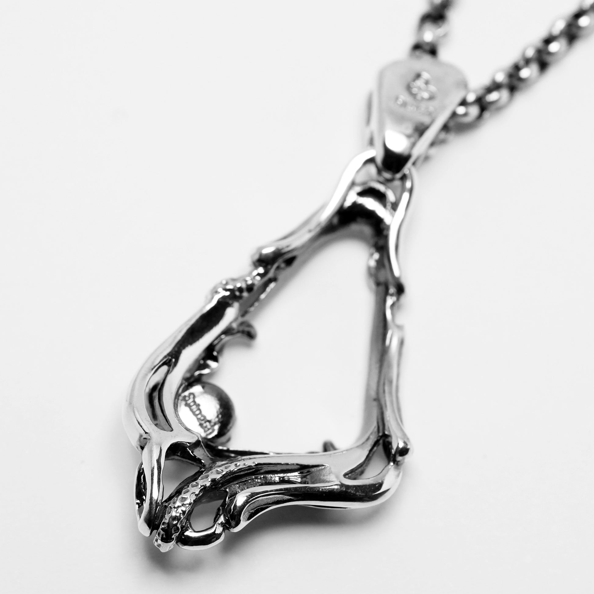 大胆なシルエットに切り抜かれたフレームペンダント。