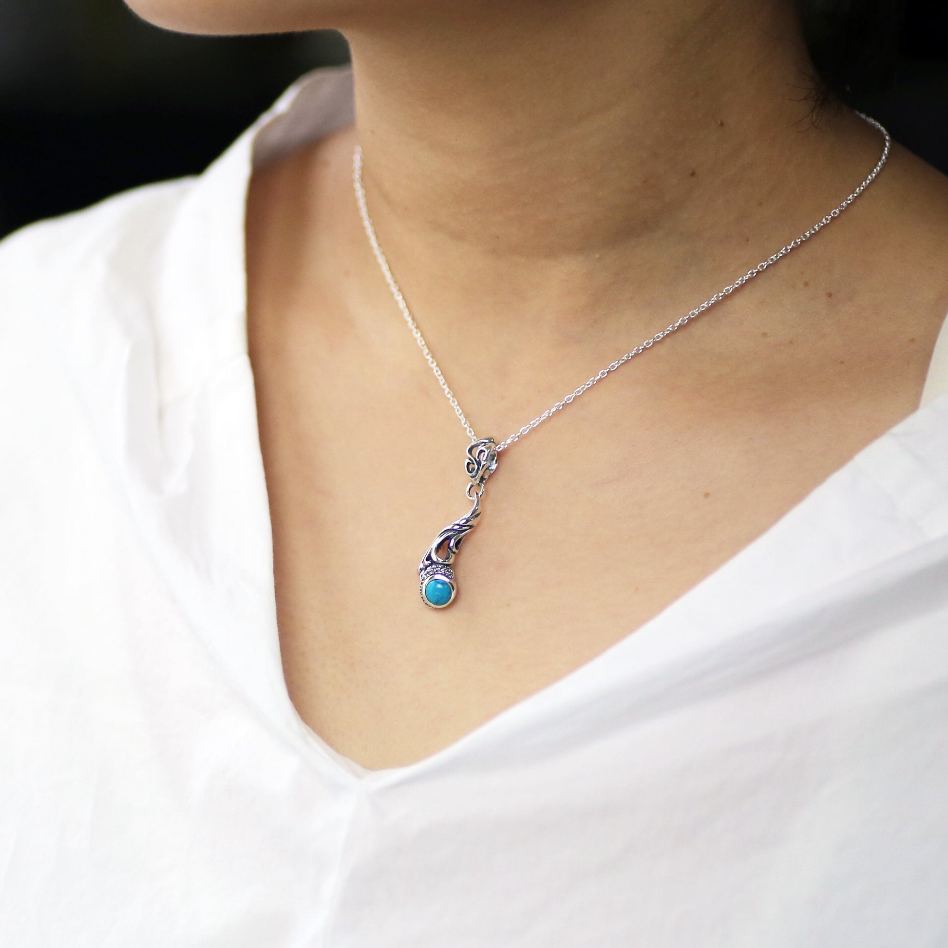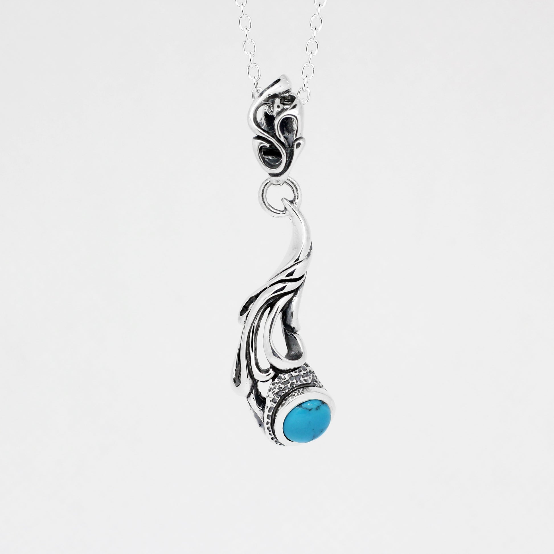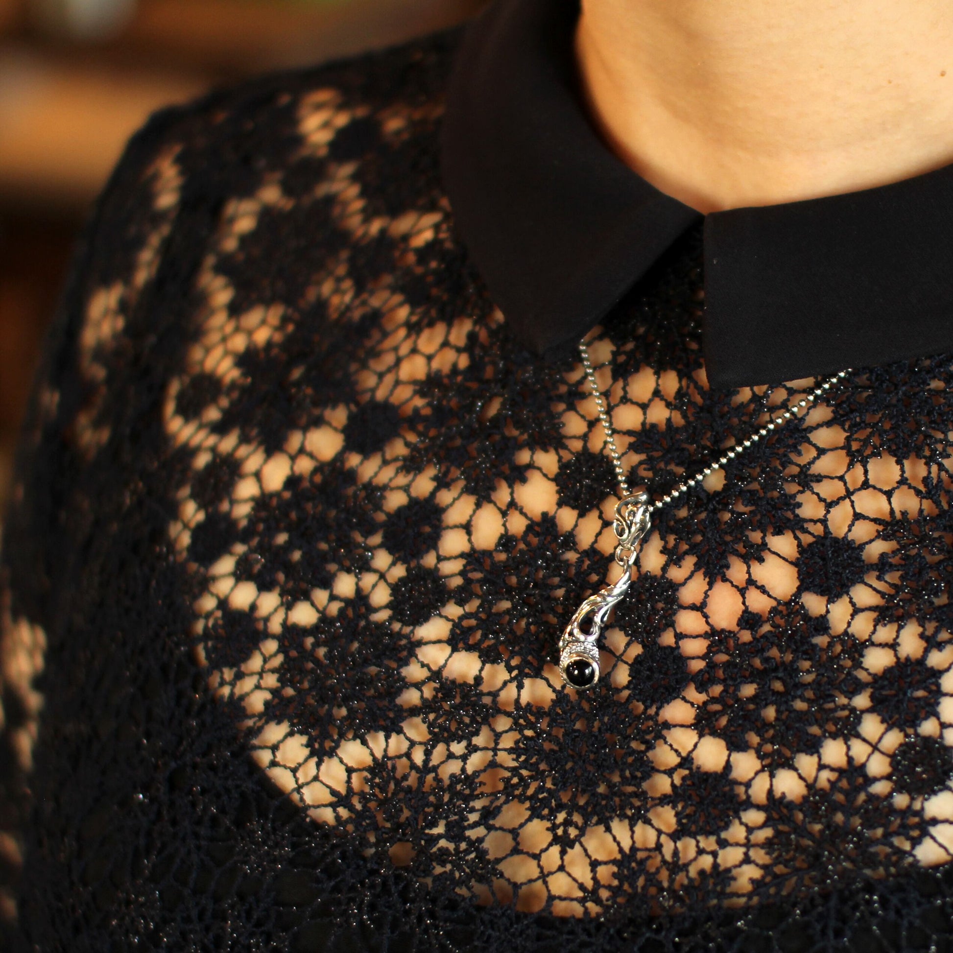 自由に動き回る曲線と透かしによって躍動感を見せるペンダント。