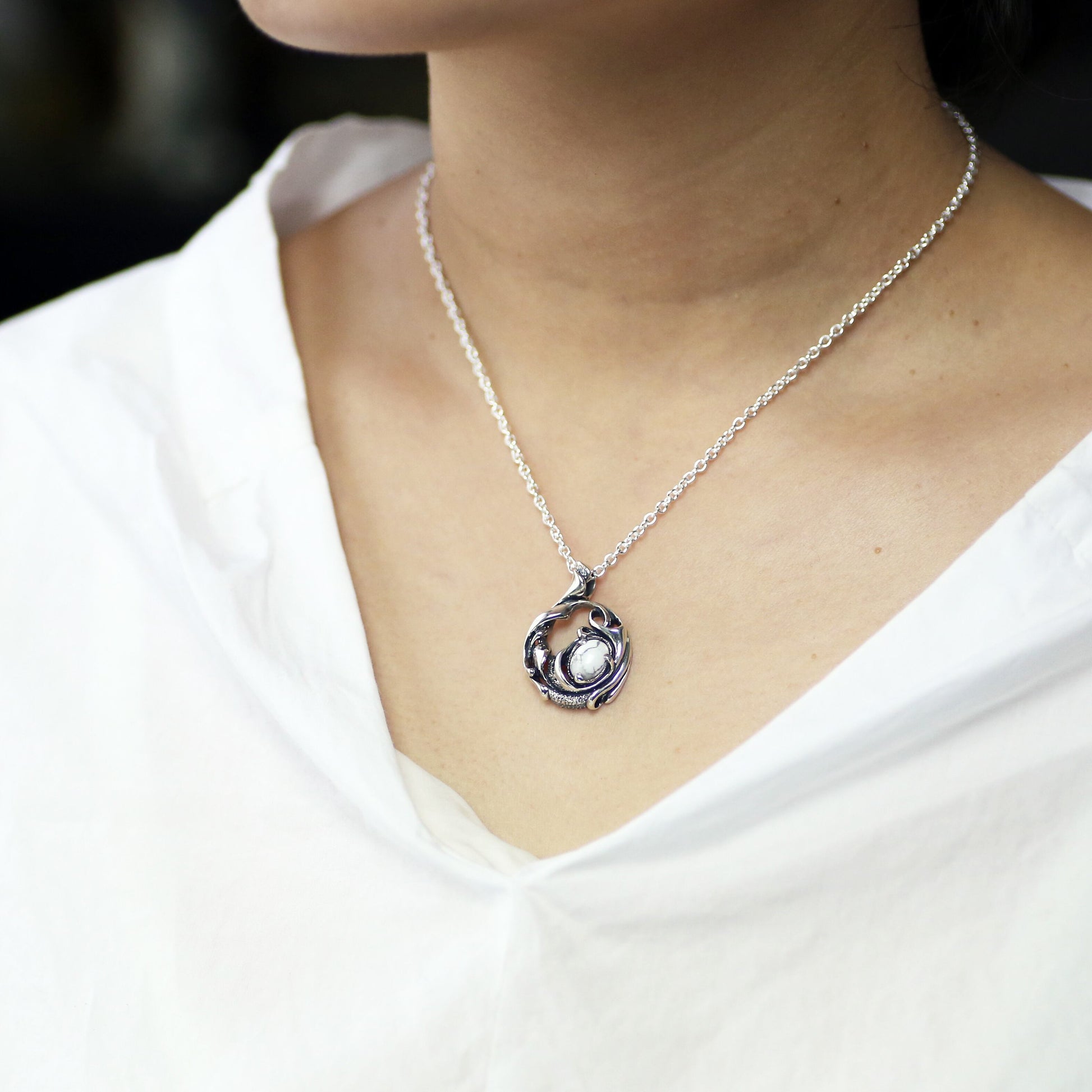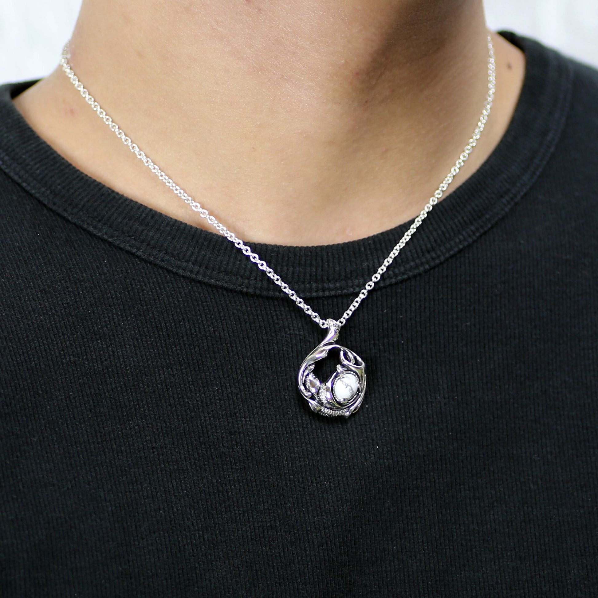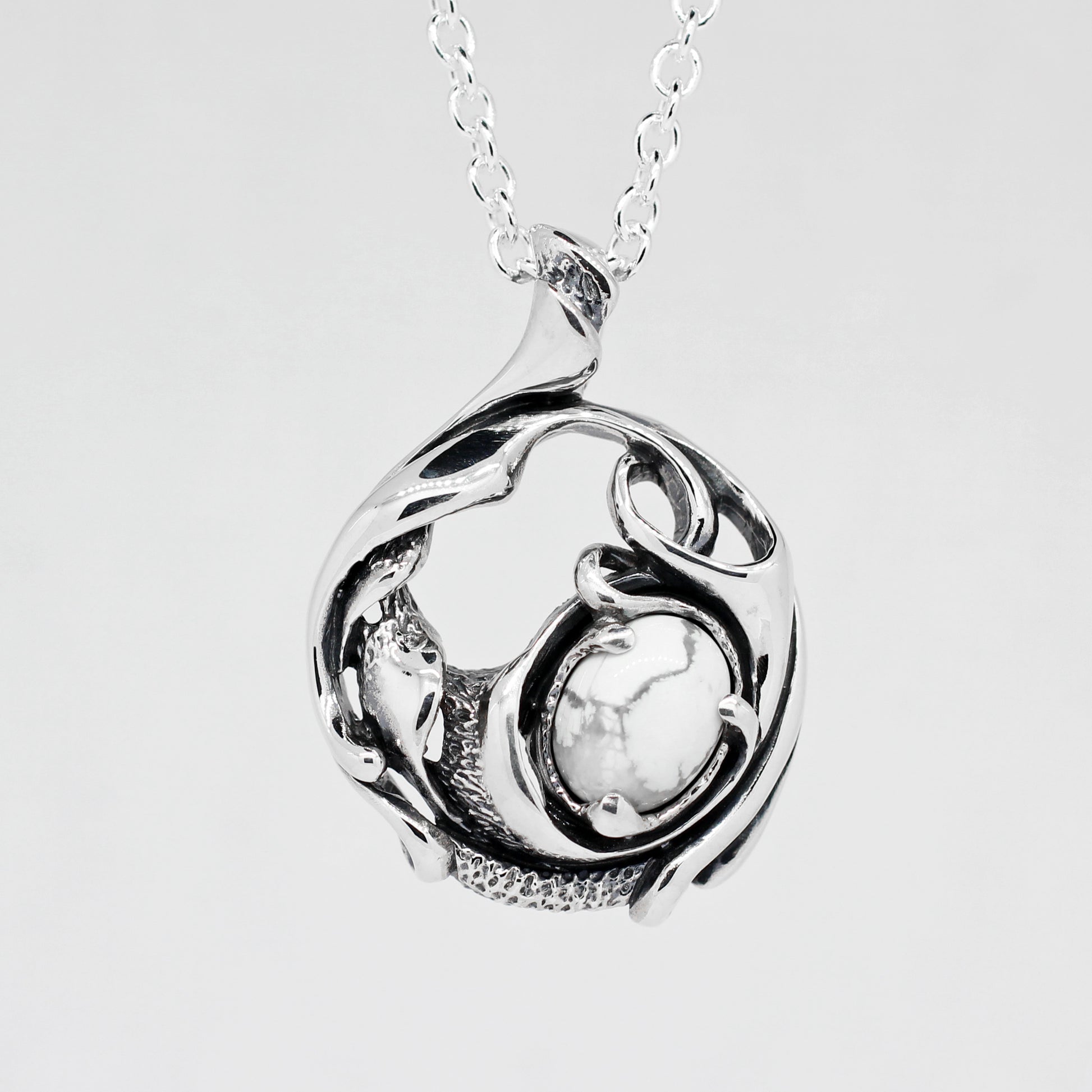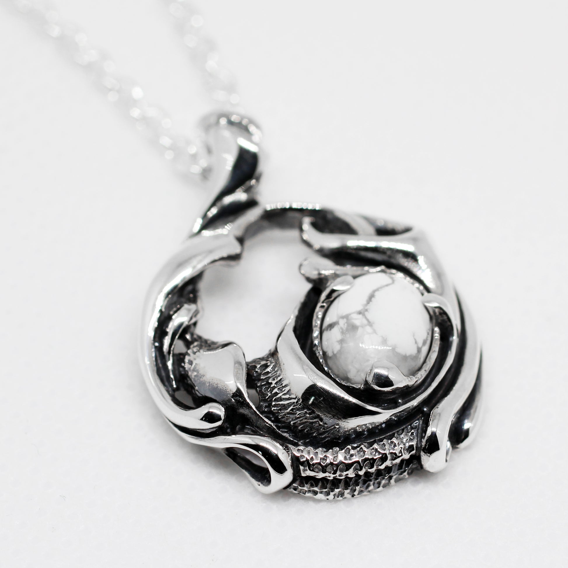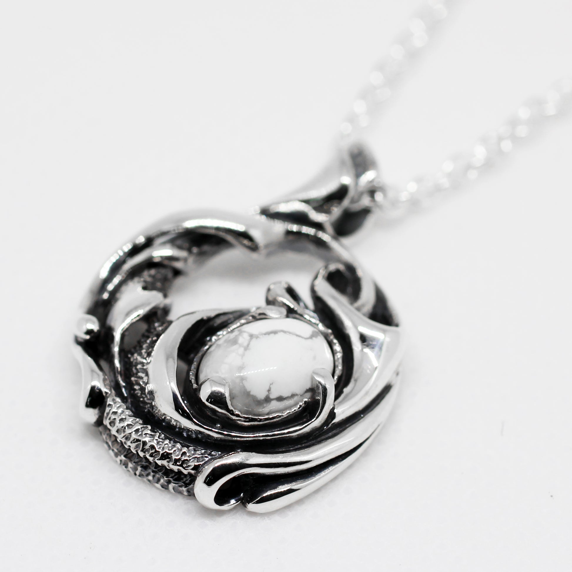 力強く柔らかな曲線で包み込むようにマグネサイトをセットしたペンダント。