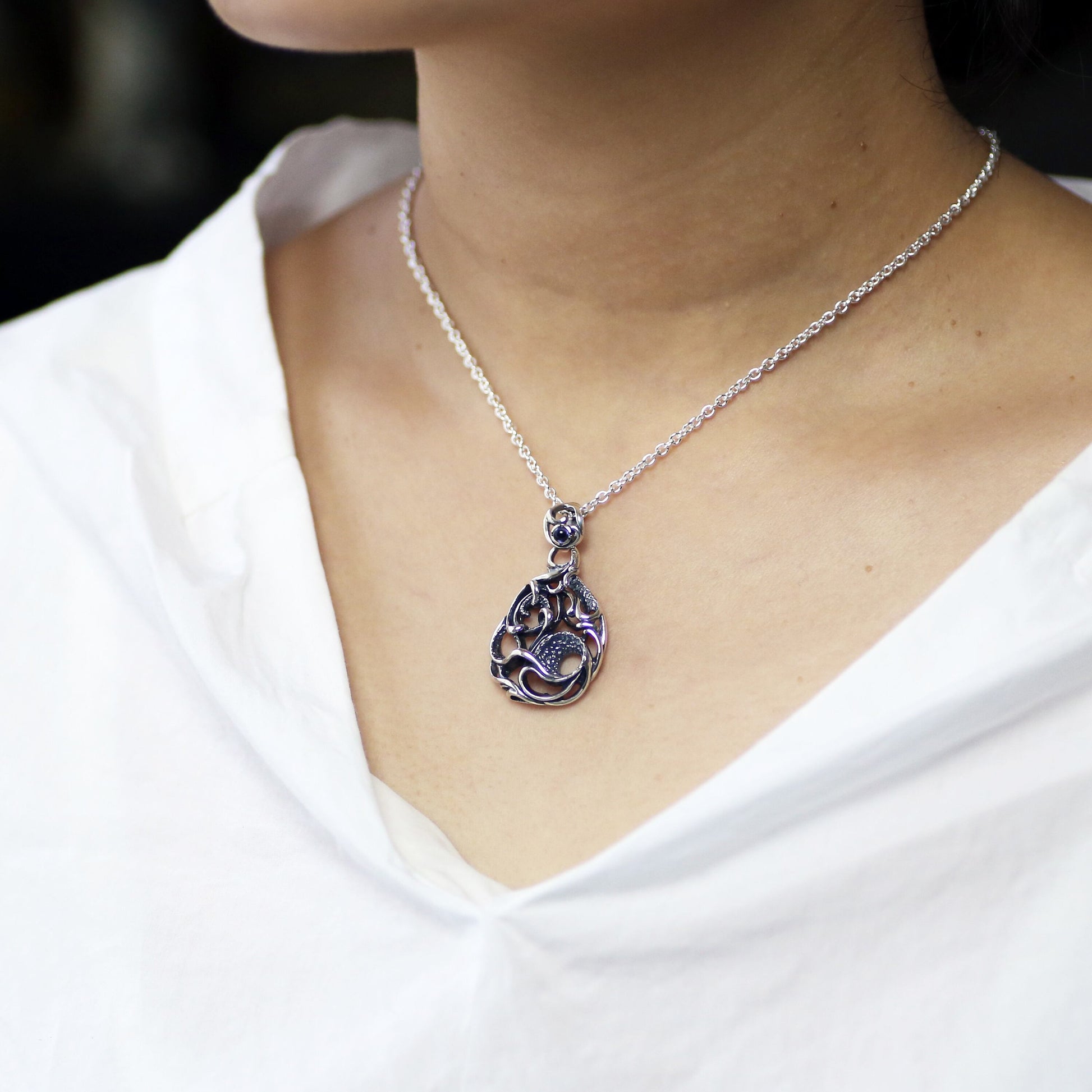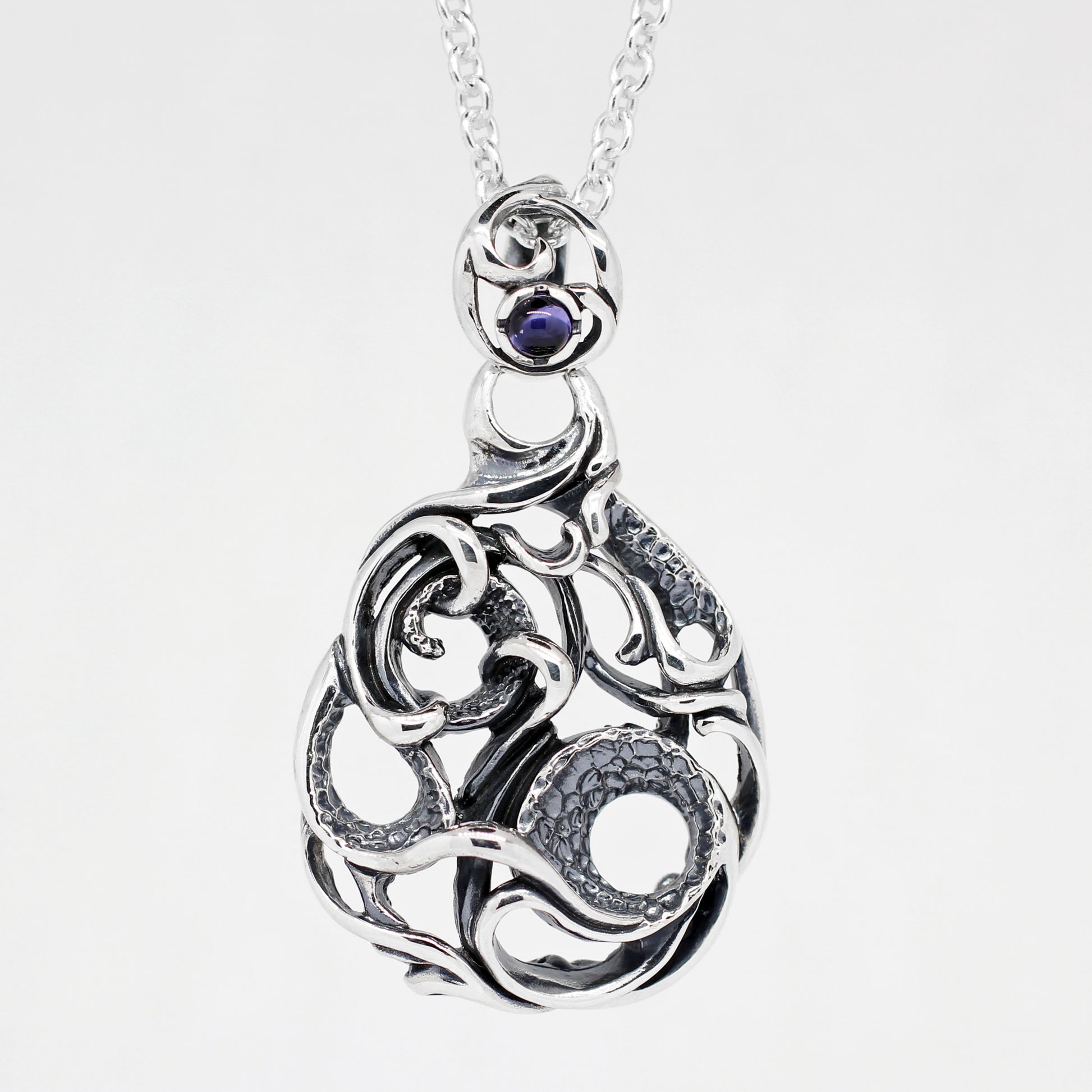 躍動感のある曲線の繋がりを雫型のシルエットで表現し、バチカンパーツに『アイオライト』をセット。