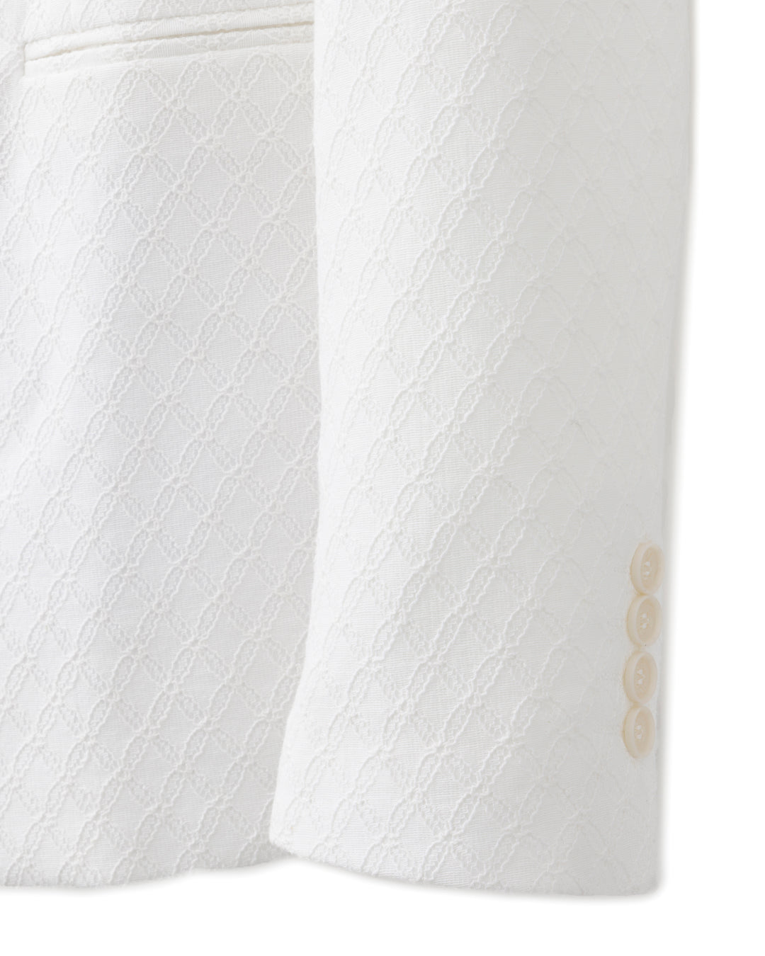 上品な表面感を持つダイア柄ラッセルレースを、カジュアルテーラードとして仕上げたホワイトジャケット。